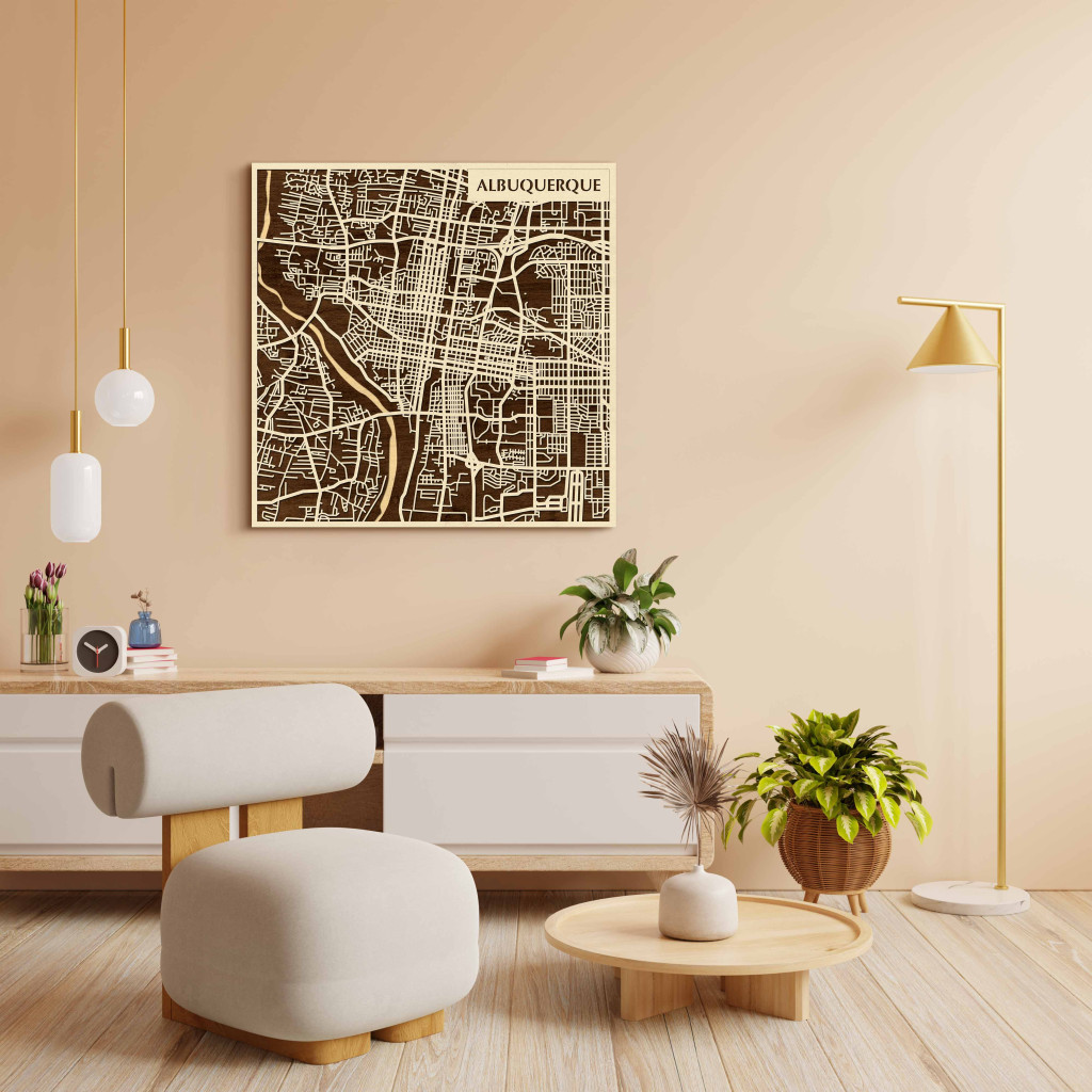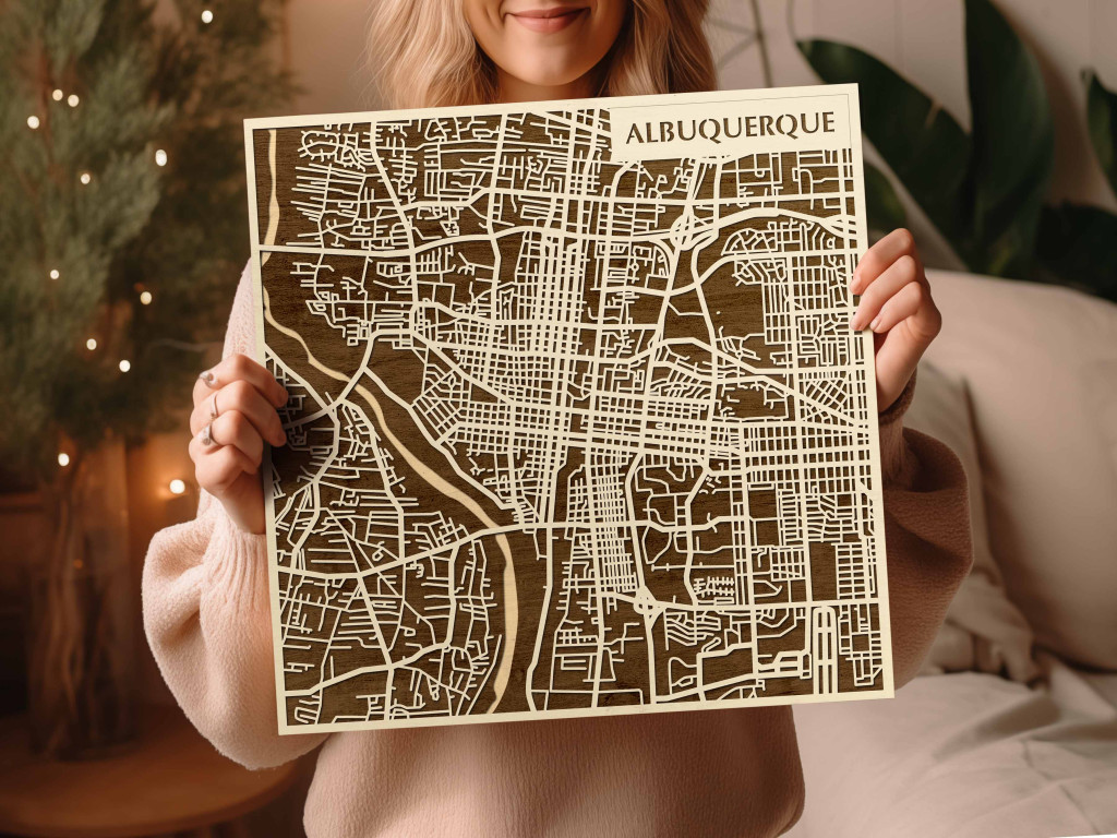 Albuquerque 3D fa várostérkép fali dekoráció – Natura Products