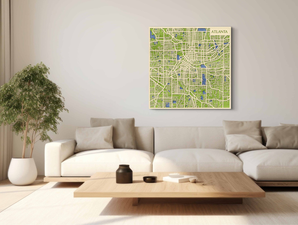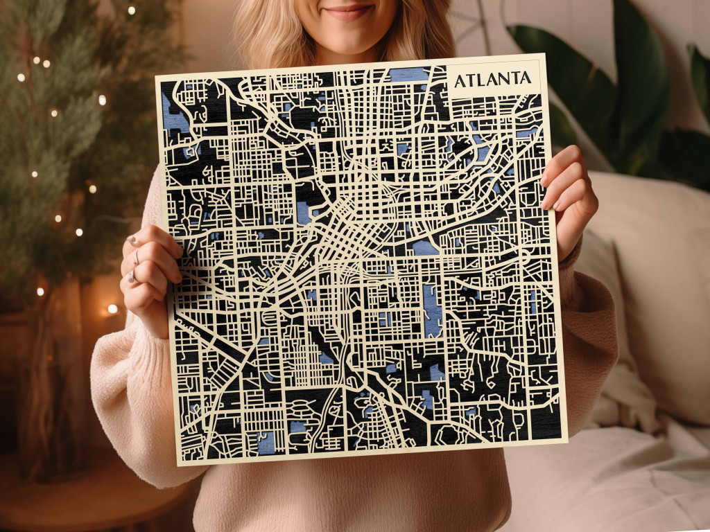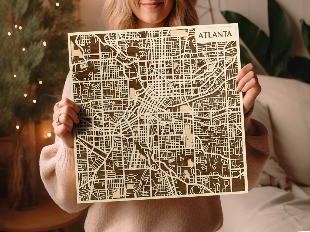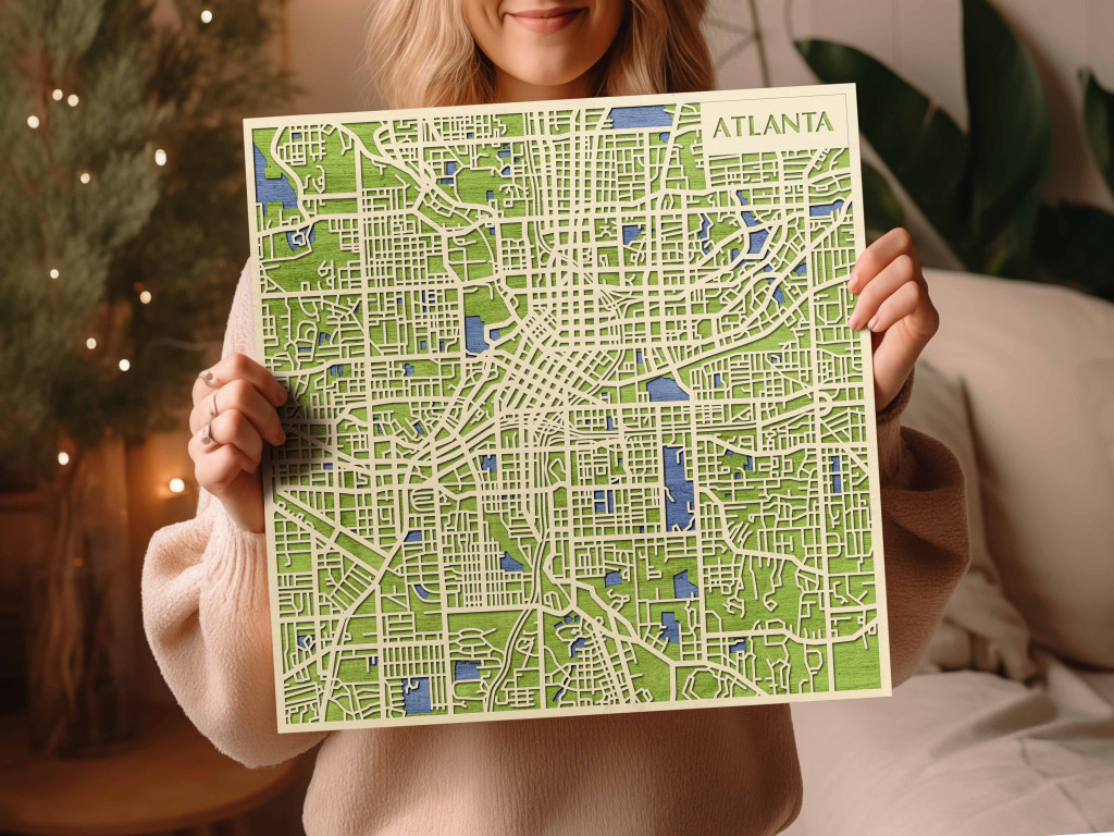 Atlanta 3D fa várostérkép fali dekoráció – Natura Products