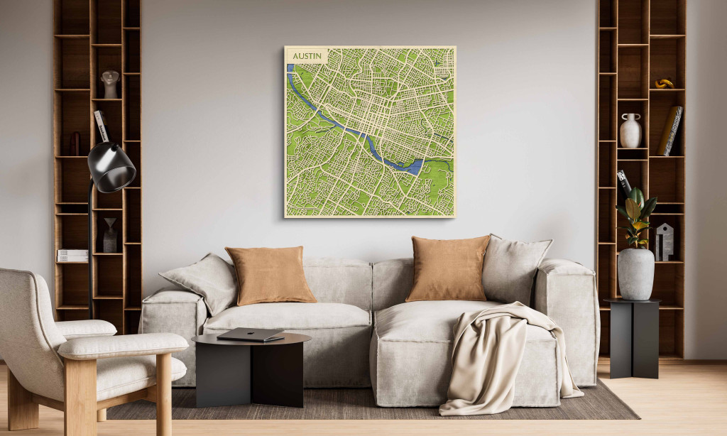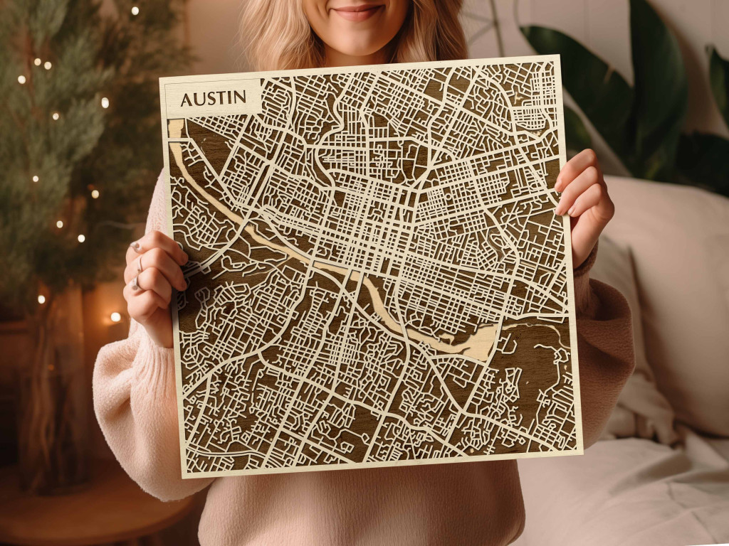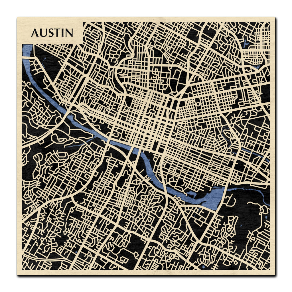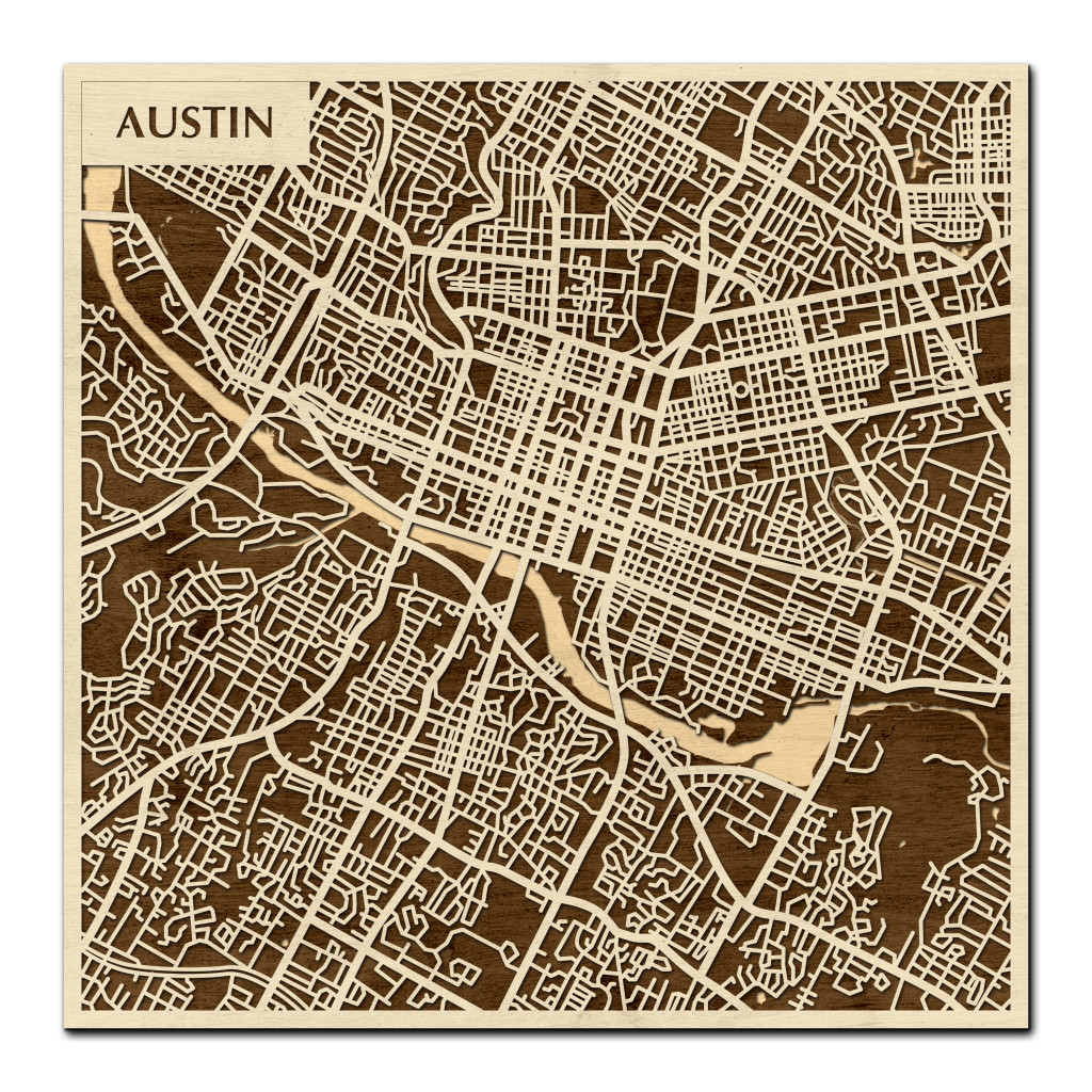 Austin 3D fa várostérkép fali dekoráció – Natura Products