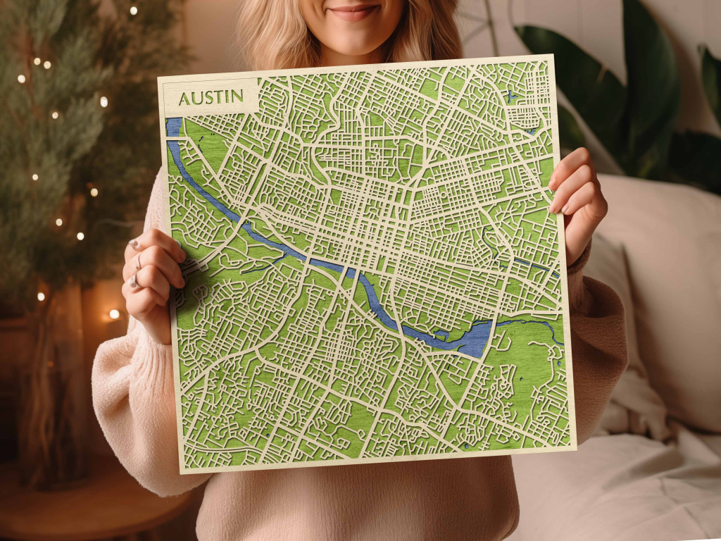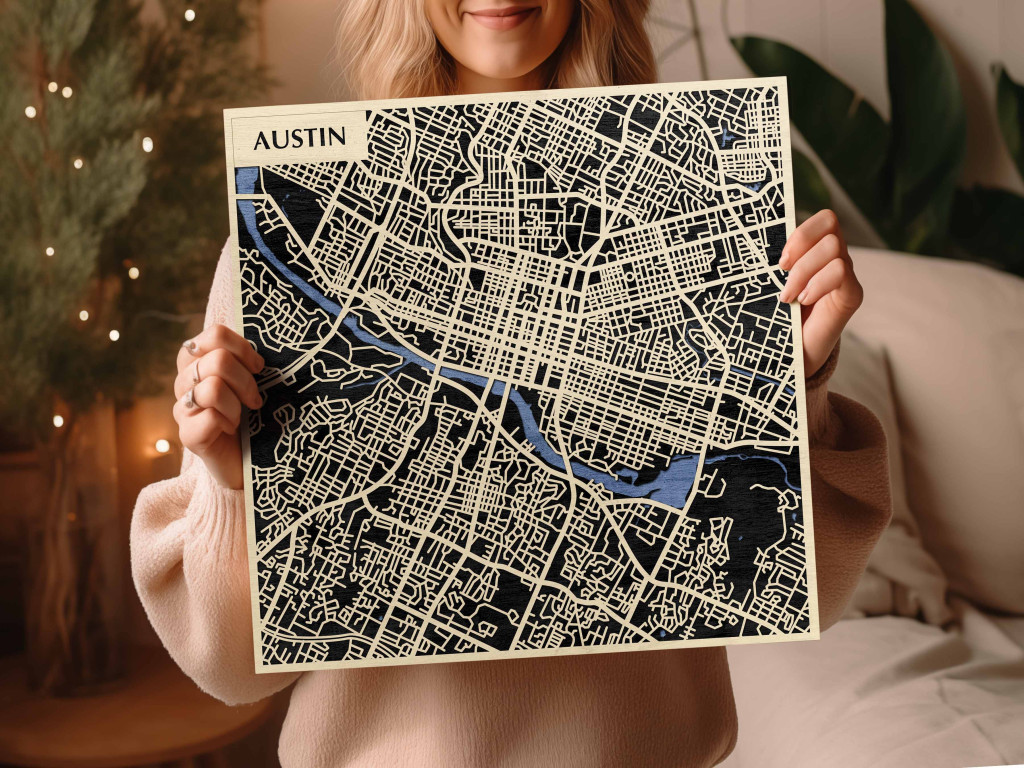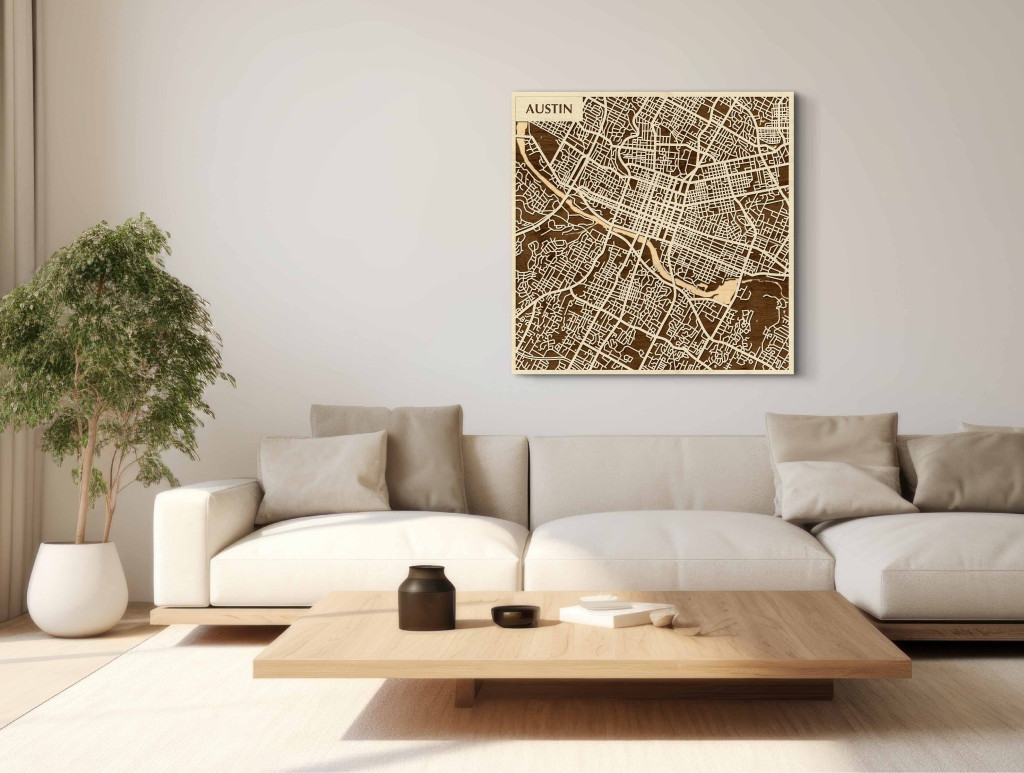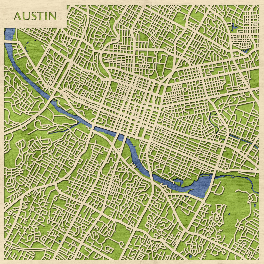 Austin 3D fa várostérkép fali dekoráció – Natura Products