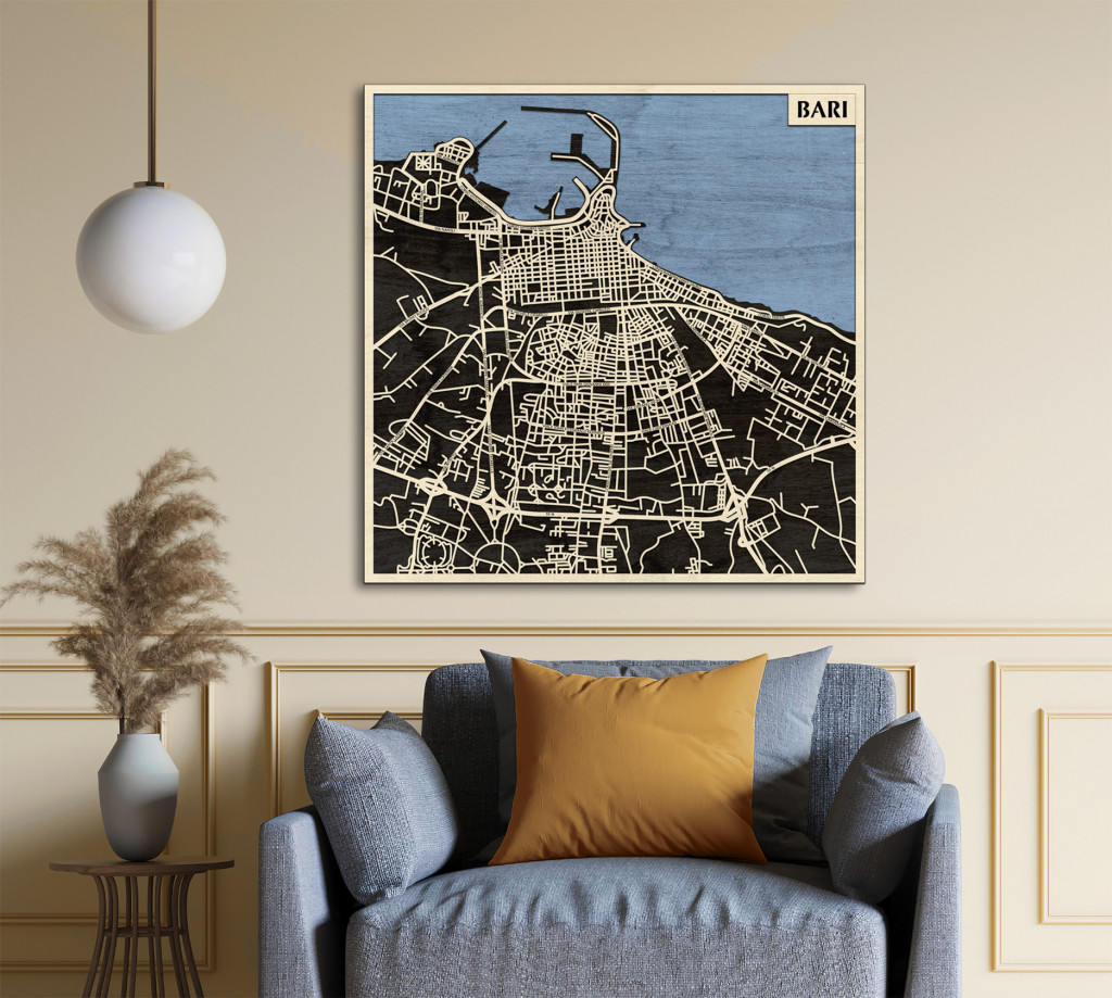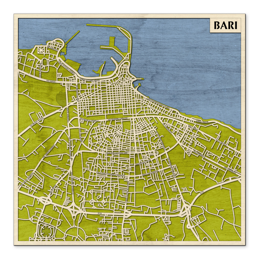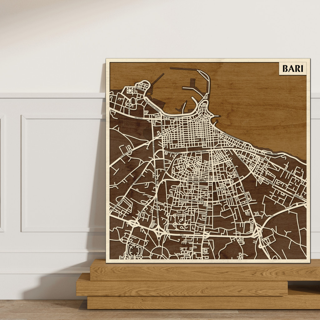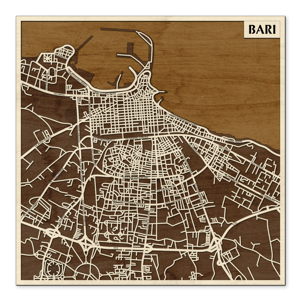 Bari 3D fa várostérkép fali dekoráció – Natura Products