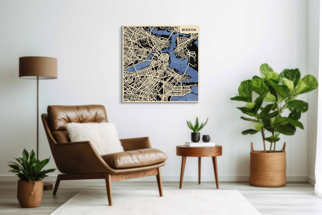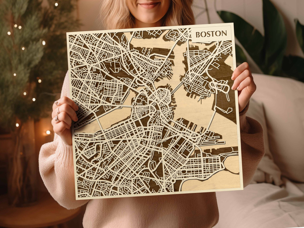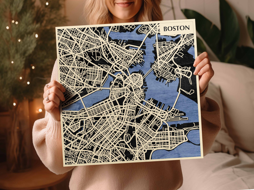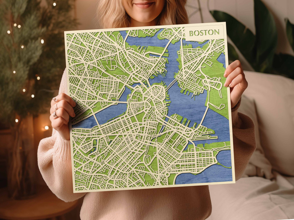 Boston 3D fa várostérkép fali dekoráció – Natura Products