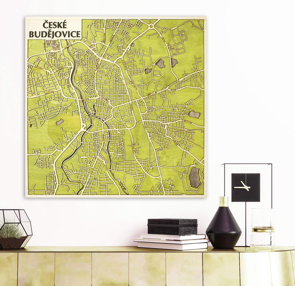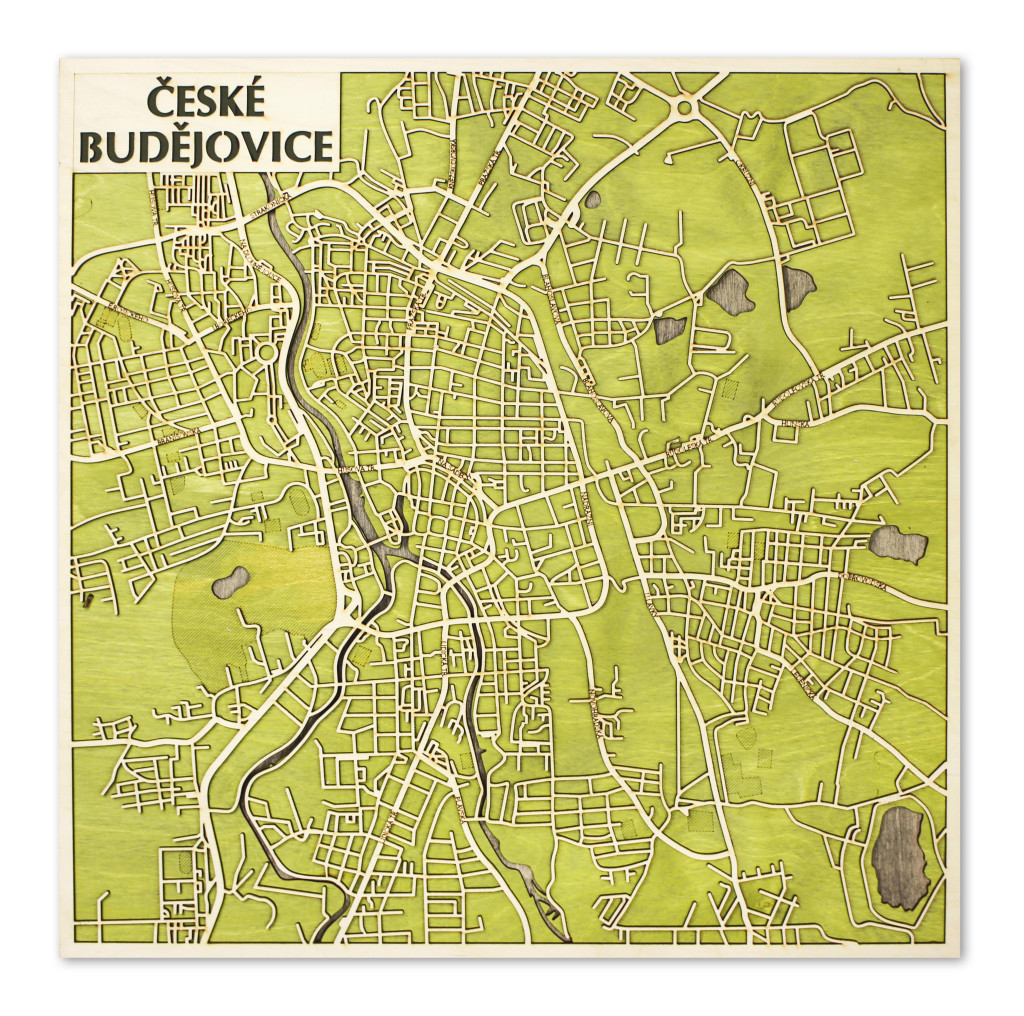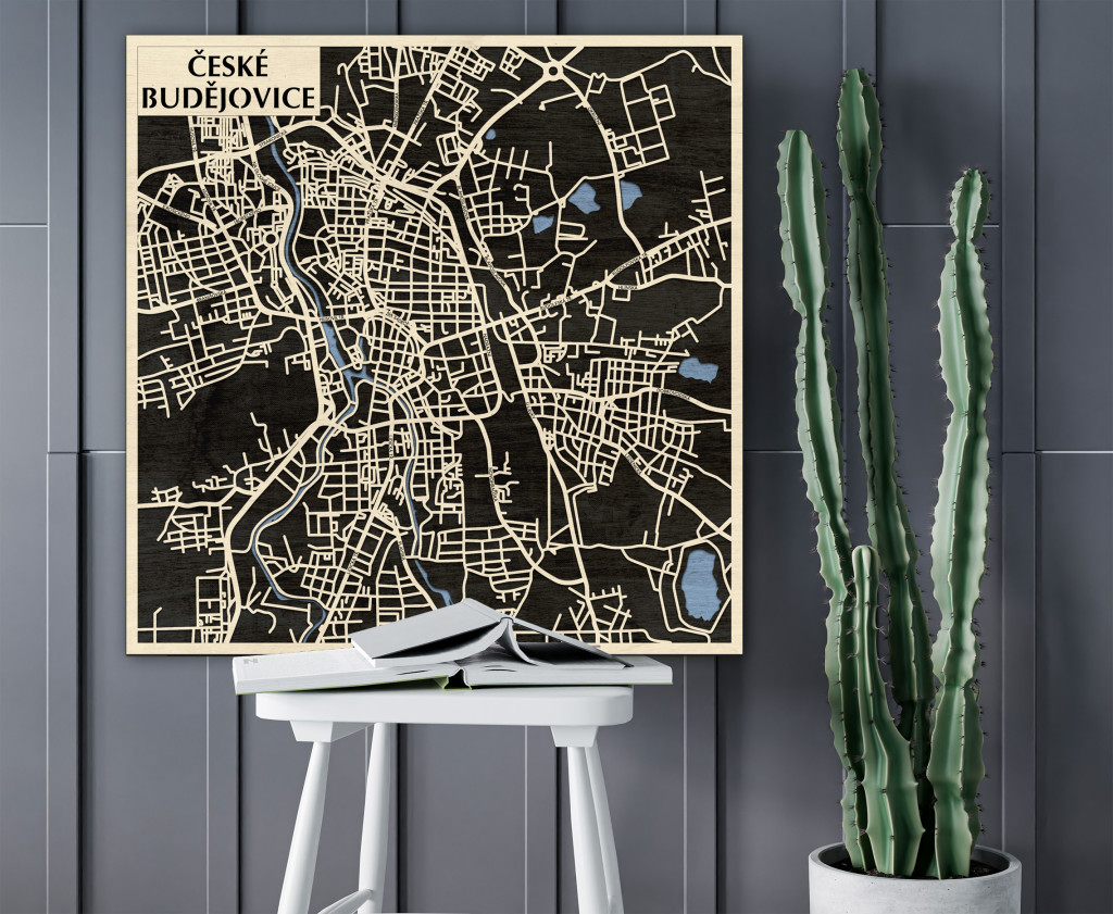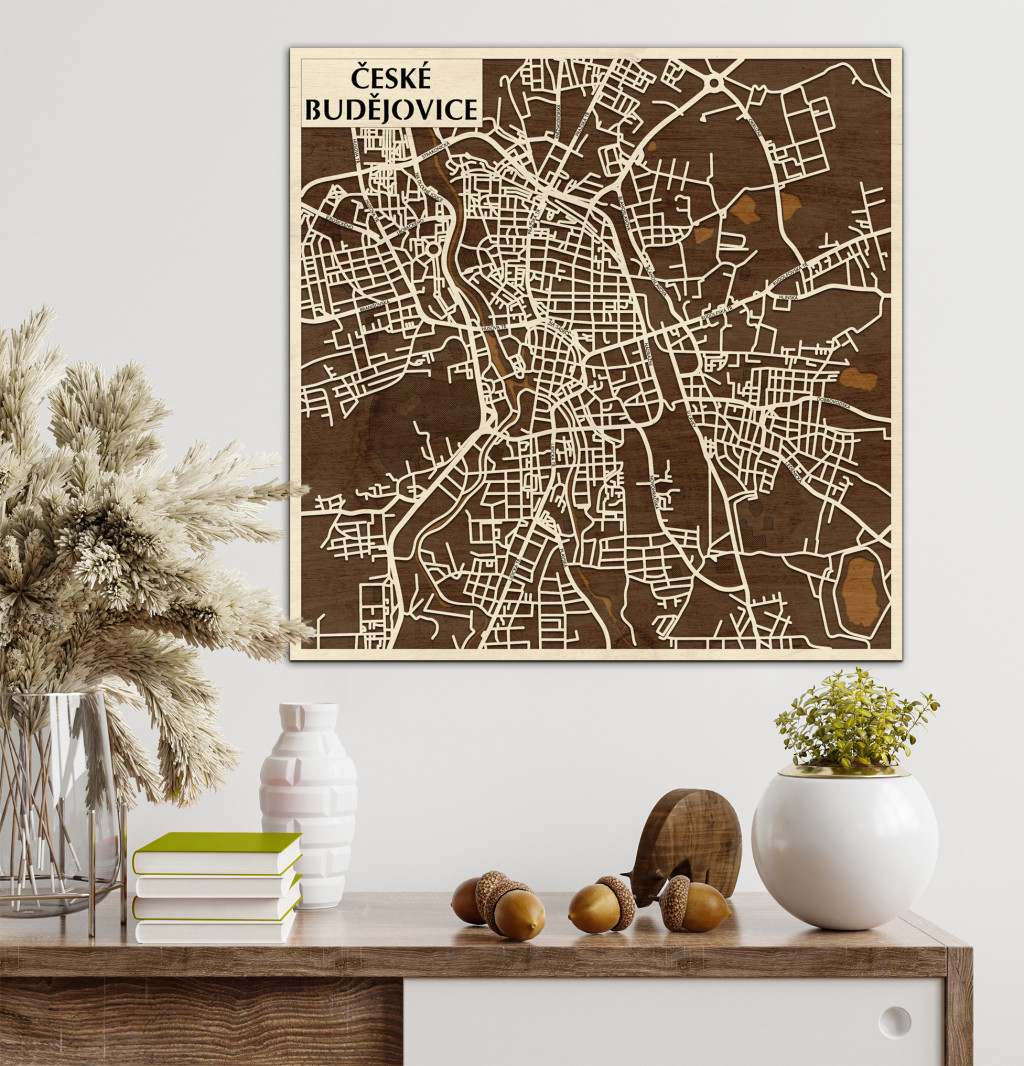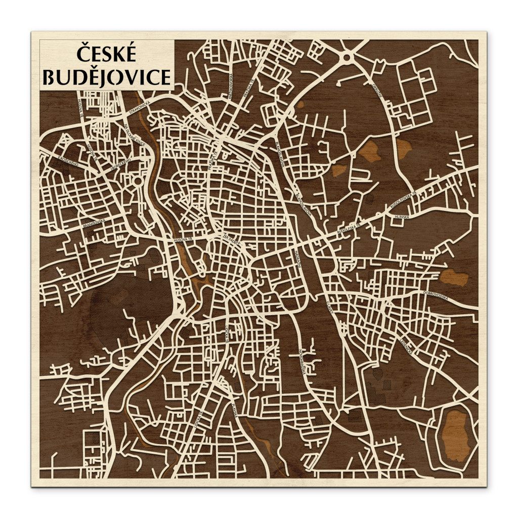 České Budějovice 3D fa várostérkép fali dekoráció – Natura Products