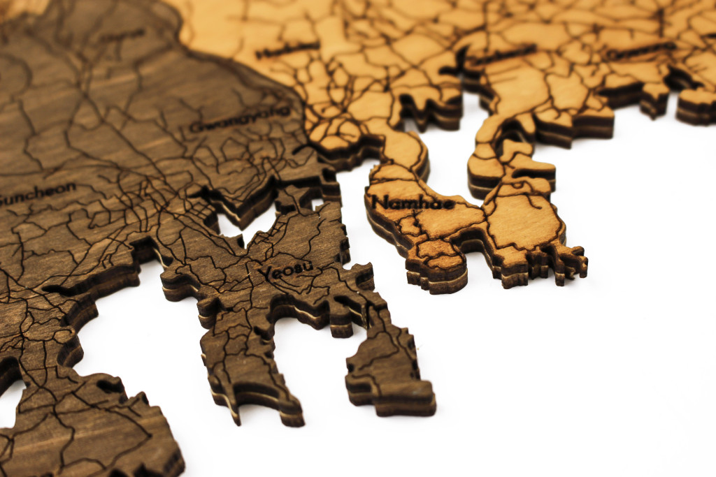 Ez a 3D fa puzzle térkép Dél-Korea ikonikus régióit és városait jeleníti meg, precízen kidolgozott részletekkel. A természetes faanyagból készült elemek elegáns és modern megjelenést kölcsönöznek a térképnek, amely tökéletesen illeszkedik bármilyen stílusú belső térhez. Az aprólékosan megmunkált darabok tökéletesen illeszkednek egymáshoz, így egy lenyűgöző és harmonikus képet alkotnak.