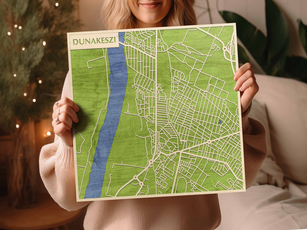 Dunakeszi 3D fa várostérkép fali dekoráció – Natura Products