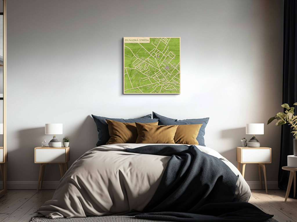Ez a gondosan lézervágott fa dekor Dunaszerdahely – Dunajská Streda városszövetének jellegzetes mintázatát emeli ki, pontos vonalvezetéssel és letisztult grafikai nyelven. A természetes fa felület és a határozott kontúrok kiegyensúlyozott együttese nyugtató, mégis karakteres vizuális jelenlétet eredményez nappaliban, irodában és előtérben. Rögzítése egyszerű és tiszta: fúrás nélkül, kétoldalas ragasztószalaggal, sima, por- és zsírmentes falfelületre ajánlott. A két méret (48 × 48 cm; 70 × 70 cm) és a három színváltozat – Zöld (természetközeli), Fekete (letisztult kontraszt), Ében (elegáns mélység) – segíti, hogy a tér arányaihoz és hangulatához illeszkedő változatot válasszon. Ajándéknak is ideális házavatóra, évfordulóra.