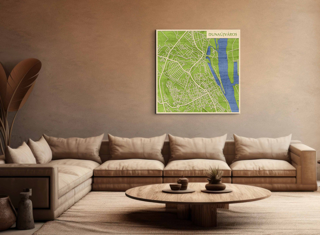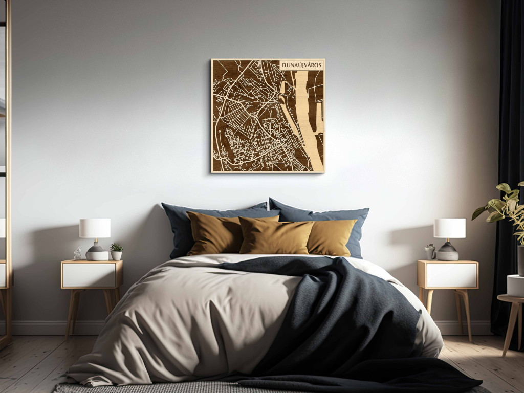 A több rétegű, lézervágott fa kompozíció Dunaújváros rendezett városszövetét és fő útvonalait emeli ki. A meleg fa textúra barátságos, időtálló jelenlétet ad, míg a tiszta kontúrok grafikus fókuszpontot teremtenek. A telepítés gyors és tiszta: fúrás nélkül, kétoldalas ragasztószalaggal javasolt felhelyezni száraz, sima és pormentes falra. A termék két méretben érhető el (48 × 48 cm és 70 × 70 cm), valamint három színben – Zöld (természetközeli), Fekete (letisztult kontraszt), Ében (elegáns mélység) –, így a különböző enteriőrök hangulatához könnyen igazítható. Ízléses ajándék házavatóra, évfordulóra vagy irodaavatóra, amely tartós és visszafogottan elegáns vizuális élményt nyújt.
