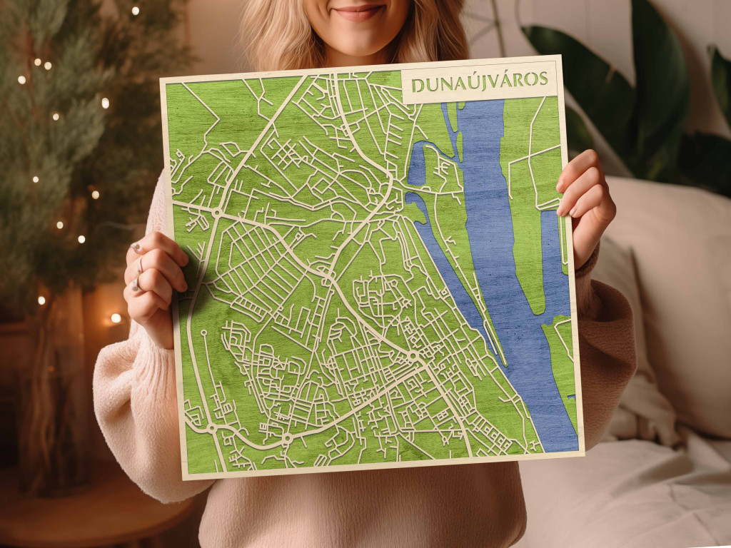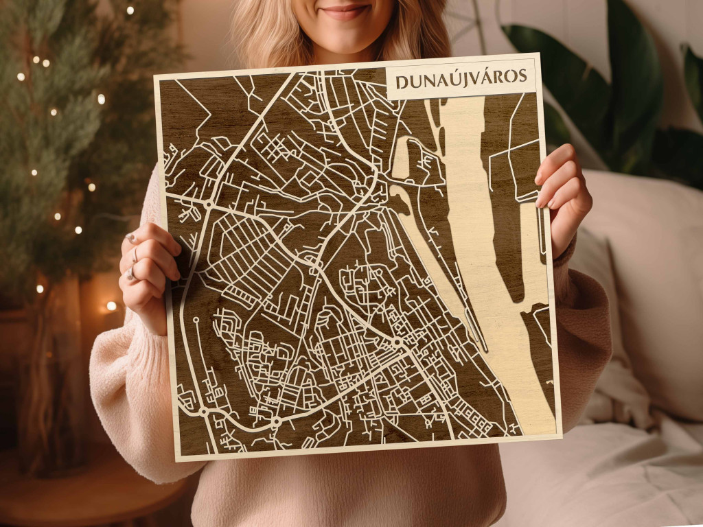 Dunaújváros 3D fa várostérkép fali dekoráció – Natura Products
