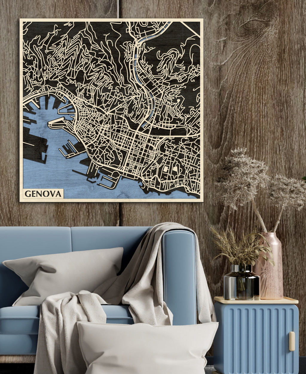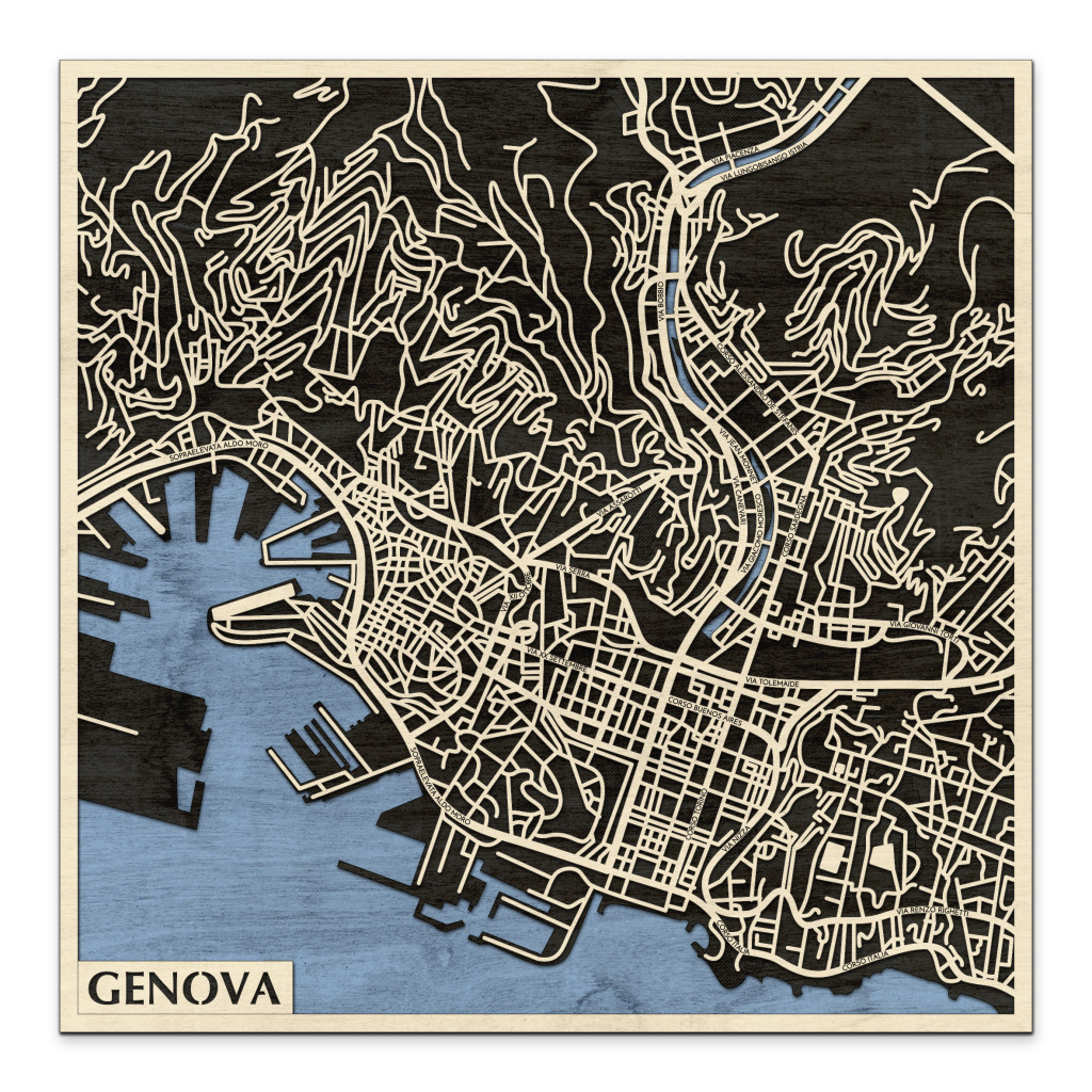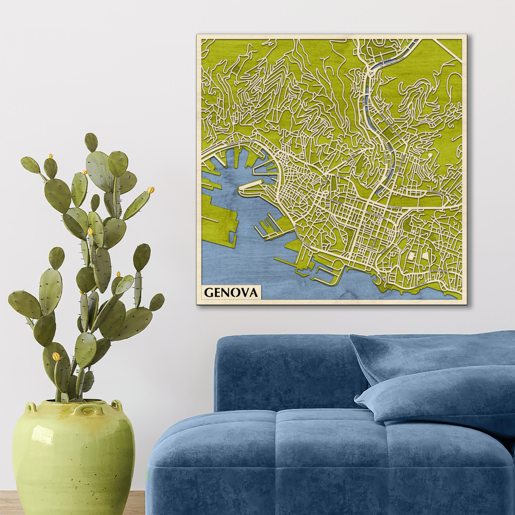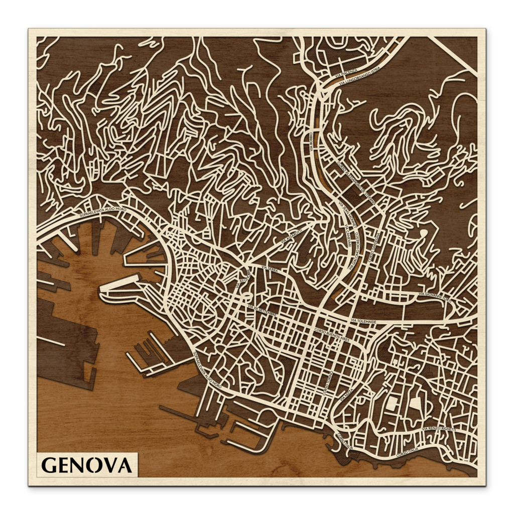Genova 3D fa várostérkép fali dekoráció – Natura Products
