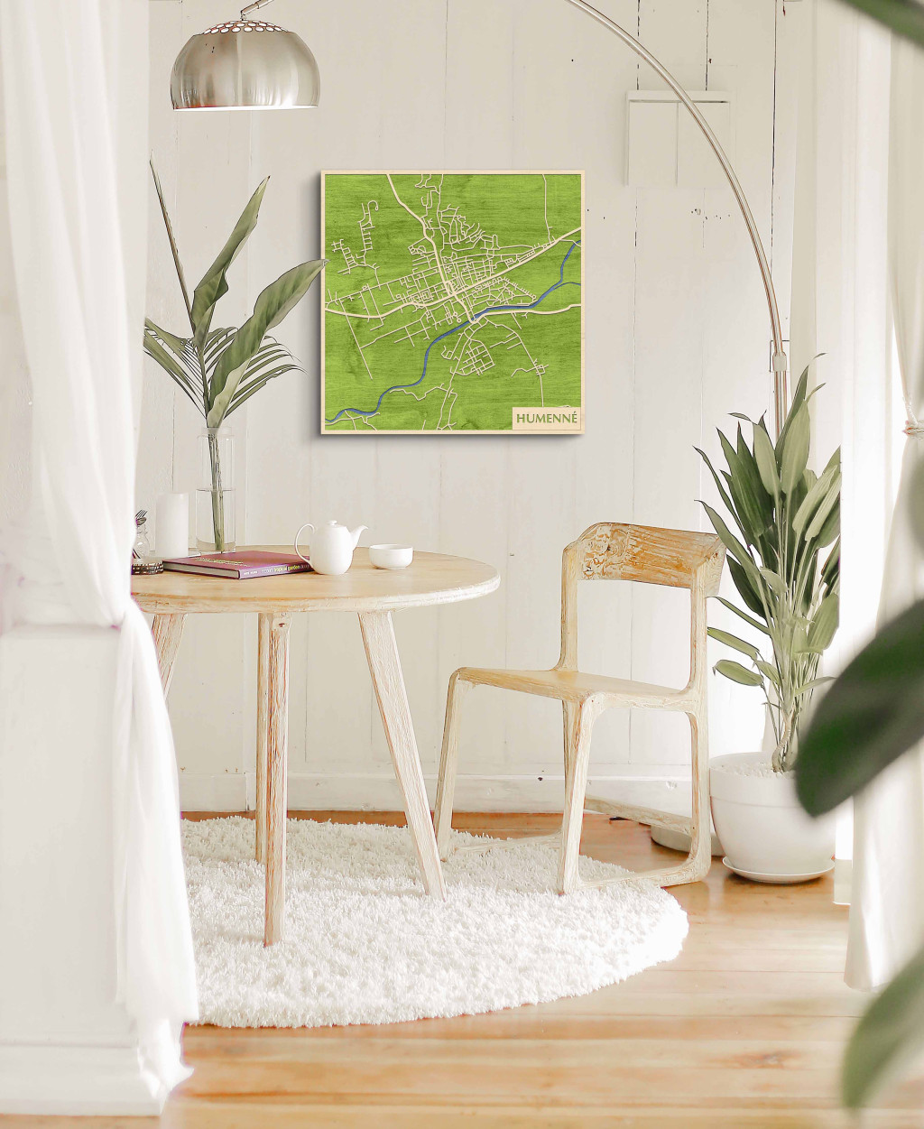 A rétegzett, lézervágott fa dekor Homonna – Humenné jellegzetes városszövetét jeleníti meg tiszta kontúrokkal és pontos vonalvezetéssel. A fa természetes textúrája barátságos, nyugodt jelenlétet ad, miközben a grafikus rajzolat fókuszált, rendezett látványt biztosít. A telepítés gyors és tiszta: fúrás nélkül, kétoldalas ragasztószalaggal ajánlott, sima, por- és zsírmentes, száraz falra. Két méretben elérhető (48 × 48 cm; 70 × 70 cm), továbbá három színben – Zöld (természetközeli), Fekete (letisztult kontraszt), Ében (elegáns mélység) – választható, így egyszerűen illeszthető a térhez. Diszkrét eleganciája miatt sokféle enteriőrben megállja a helyét, ajándékba is megfelelő.