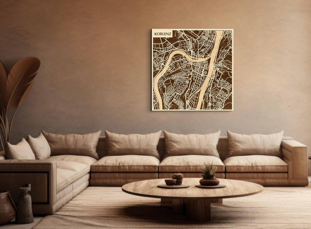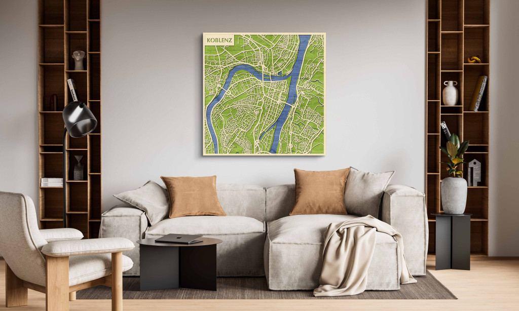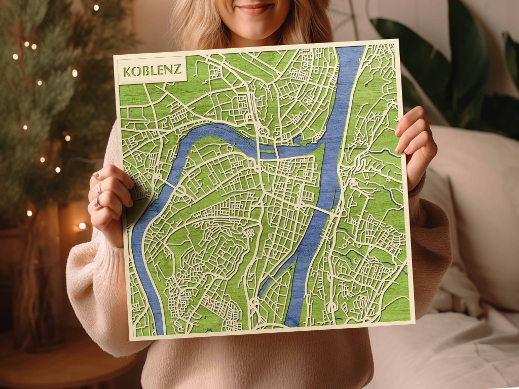 A rétegzett, lézervágott fa dekor Koblenz jellegzetes városszerkezetét és folyóparti csomópontjait emeli ki tiszta, fókuszált kontúrokkal. A fa természetes textúrája barátságos, nyugodt megjelenést ad, miközben a grafikus rajzolat rendezett, modern hatást kelt. A telepítés kényelmes: fúrás nélkül, kétoldalas ragasztószalaggal ajánlott, sima, por- és zsírmentes, száraz falra. Két méretben elérhető (48 × 48 cm; 70 × 70 cm), és három színben – Zöld (természetközeli), Fekete (letisztult kontraszt), Ében (elegáns mélység) – választható, így a belső tér stílusához igazítható. Ajándéknak is univerzális, visszafogott és időtálló megjelenéssel.