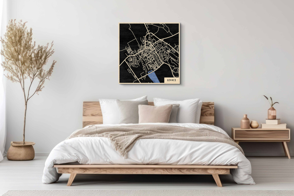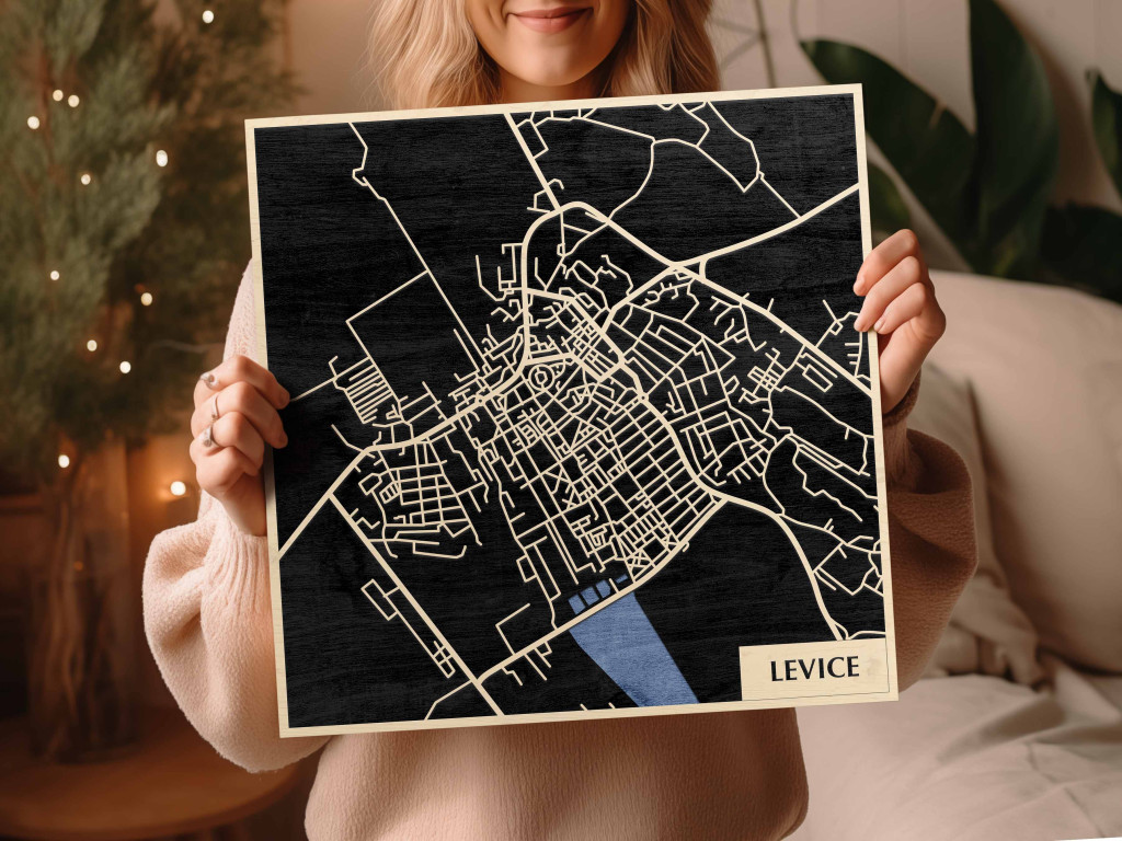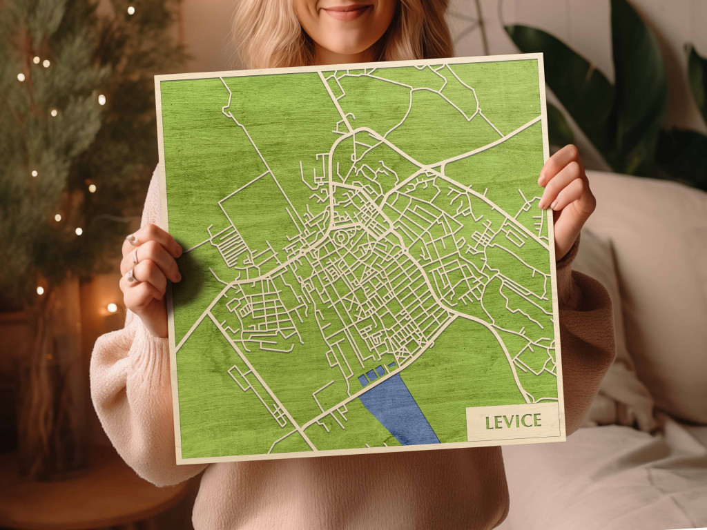 A rétegzett, lézervágott fa dekor Léva – Levice városszövetét és főbb útvonalait jeleníti meg tiszta, fókuszált kontúrokkal. A fa természetes textúrája barátságos, nyugodt megjelenést ad, miközben a grafikus rajzolat rendezett, modern fókuszpontot teremt. A telepítés egyszerű és tiszta: fúrás nélkül, kétoldalas ragasztószalaggal javasolt felhelyezni sima, por- és zsírmentes, száraz falfelületre. A termék két méretben (48 × 48 cm; 70 × 70 cm) és három színben – Zöld (természetközeli), Fekete (letisztult kontraszt), Ében (elegáns mélység) – érhető el, így a tér arányaihoz és hangulatához igazítható. Ajándékként is univerzális választás, visszafogott és időtálló megjelenéssel.