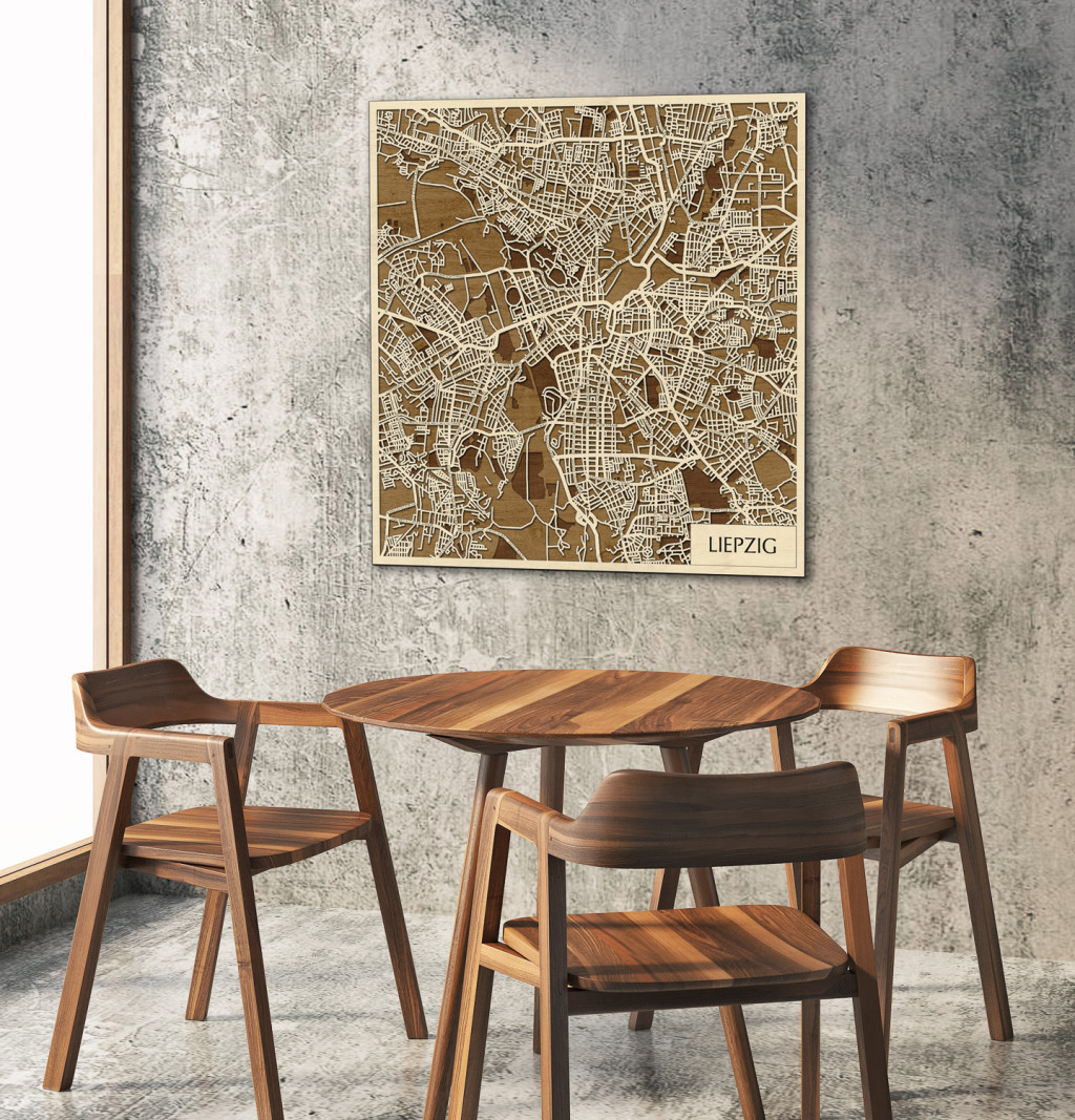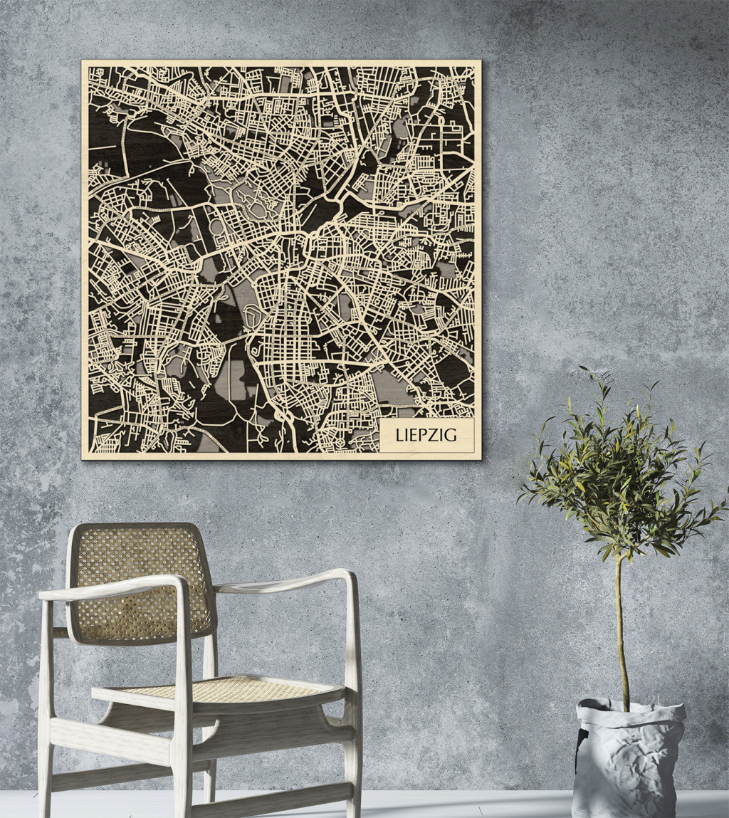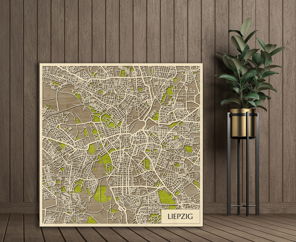 Lipcse 3D fa várostérkép fali dekoráció – Natura Products