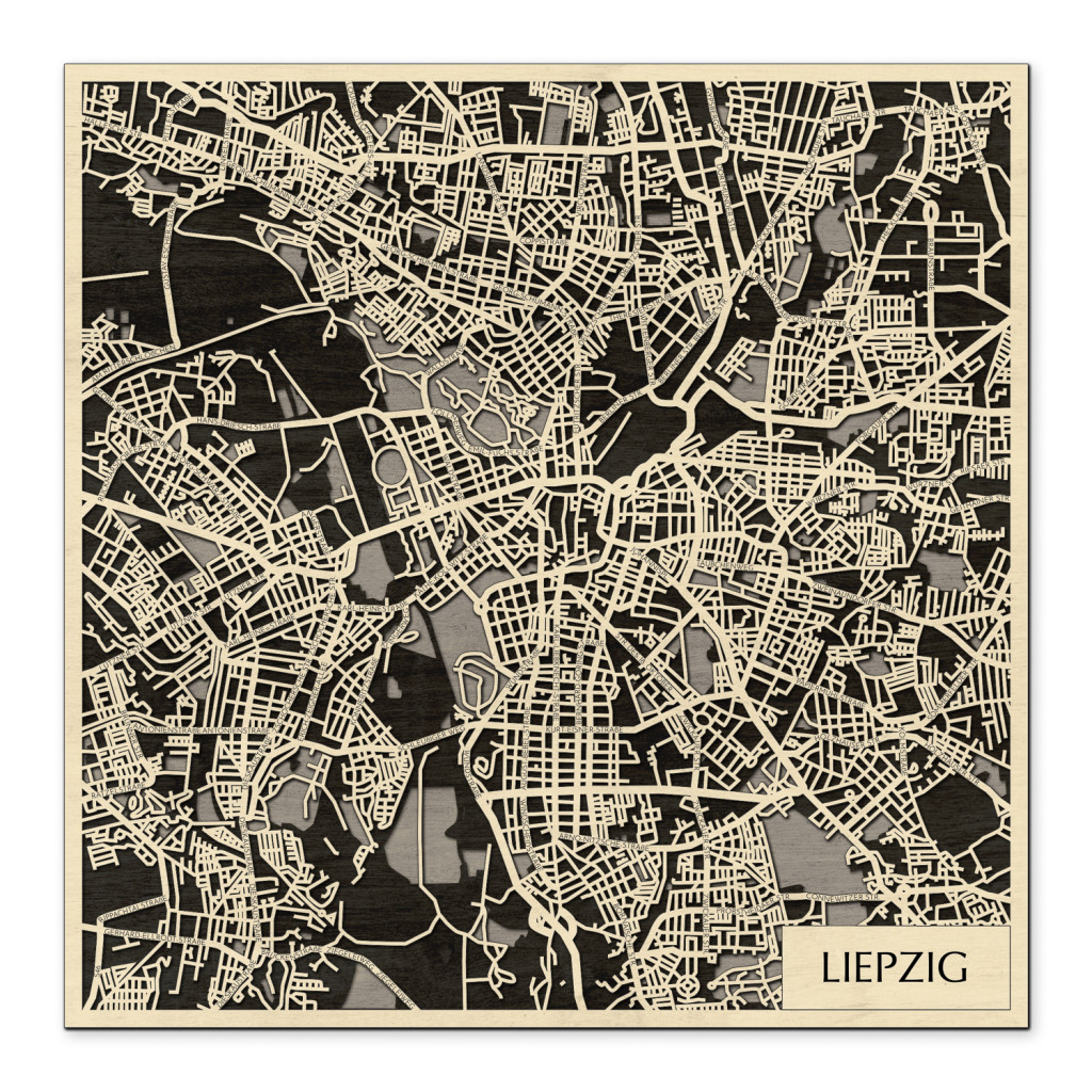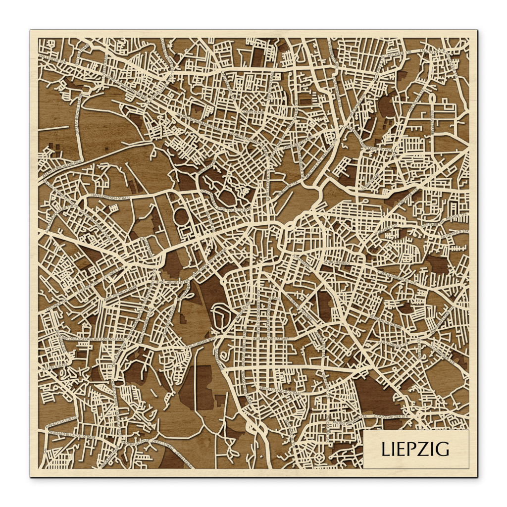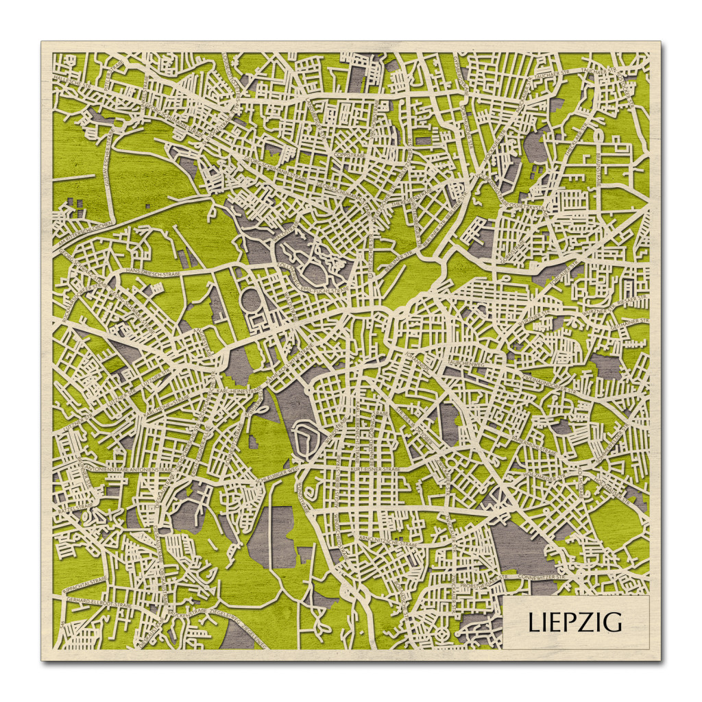 Lipcse 3D fa várostérkép fali dekoráció – Natura Products
