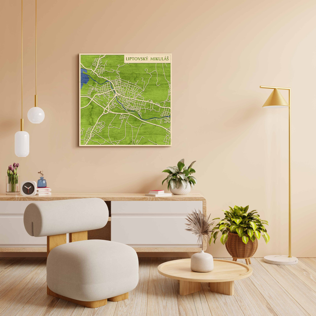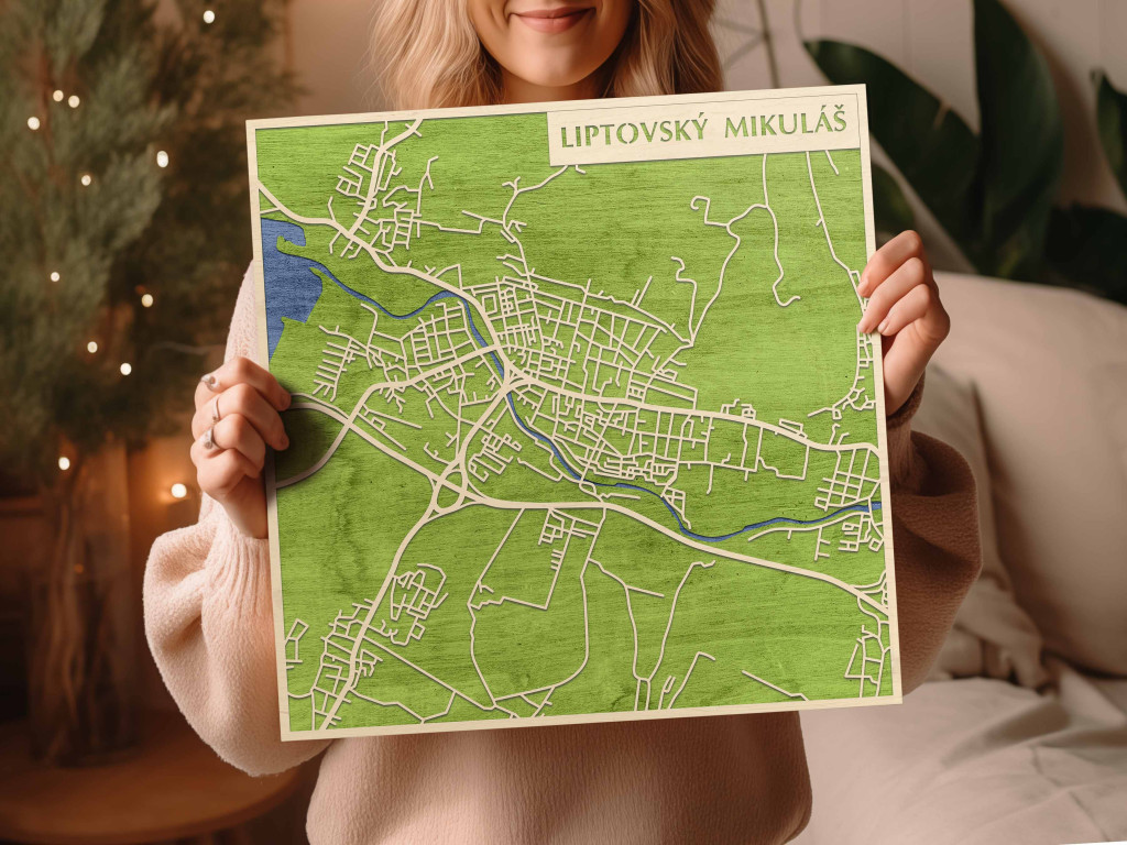 A rétegzett, lézervágott fa dekor Liptószentmiklós – Liptovský Mikuláš városszövetét és főbb útvonalait emeli ki tiszta, fókuszált rajzolattal. A fa természetes textúrája barátságos, nyugodt jelenlétet ad, miközben a grafikus kontúrok rendezett vizuális fókuszpontot teremtenek modern és klasszikus enteriőrben is. A telepítés gyors és tiszta: fúrás nélkül, kétoldalas ragasztószalaggal javasolt felhelyezni sima, por- és zsírmentes, száraz falfelületre. A termék két méretben (48 × 48 cm; 70 × 70 cm) és három színben – Zöld (természetközeli), Fekete (letisztult kontraszt), Ében (elegáns mélység) – érhető el, így a tér arányaihoz és fényviszonyaihoz igazítható. Letisztult, időtálló ajándék, amely sokféle stílusban megállja a helyét.
