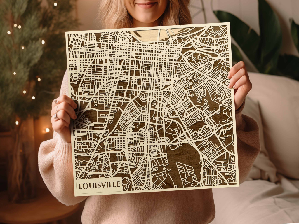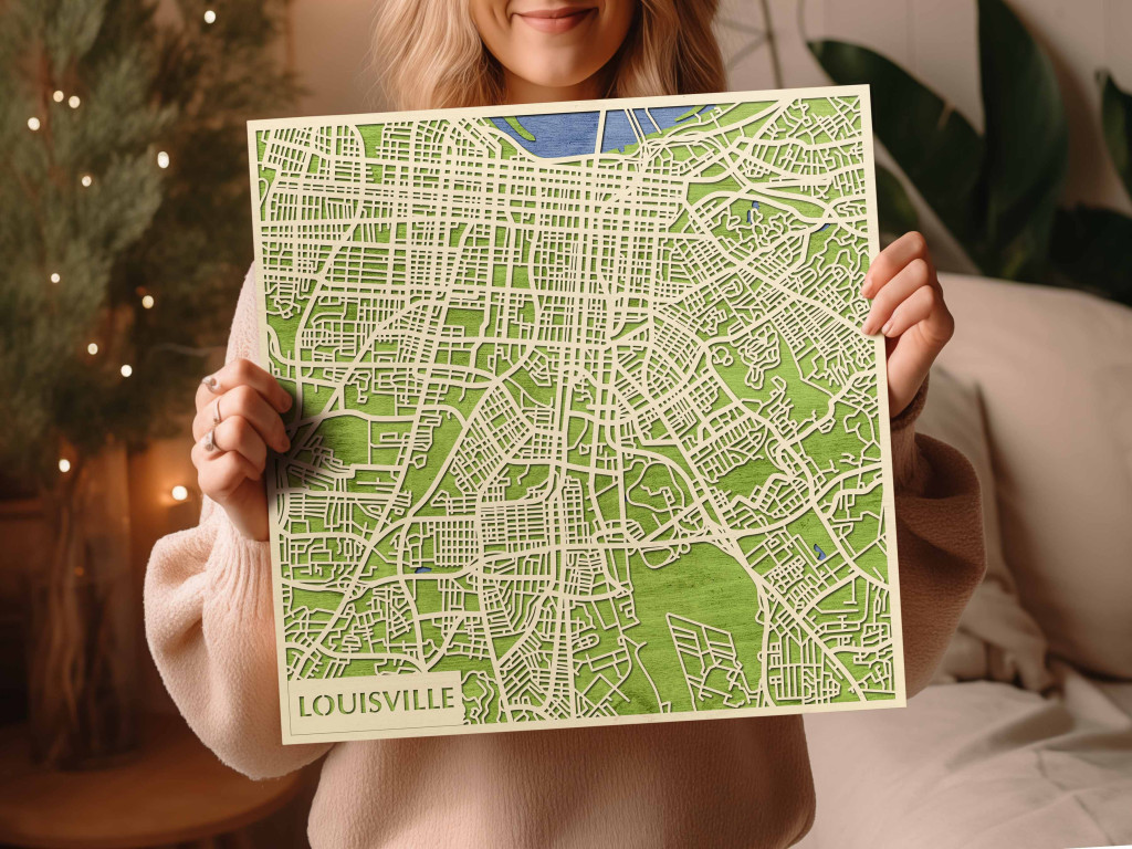 Louisville 3D fa várostérkép fali dekoráció – Natura Products