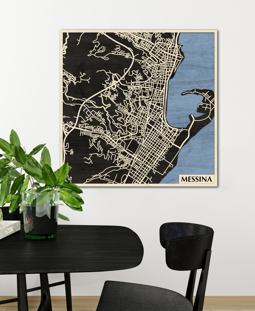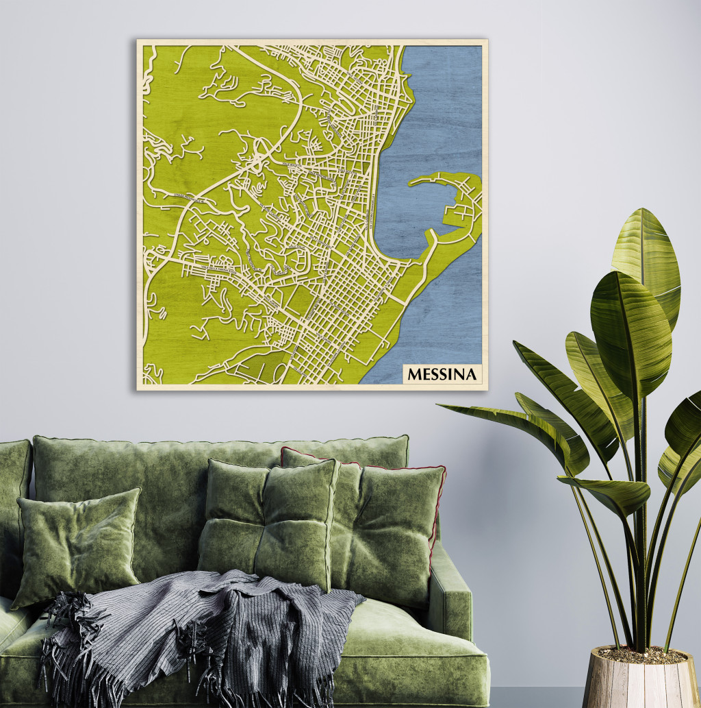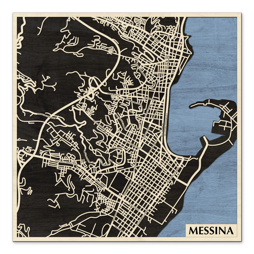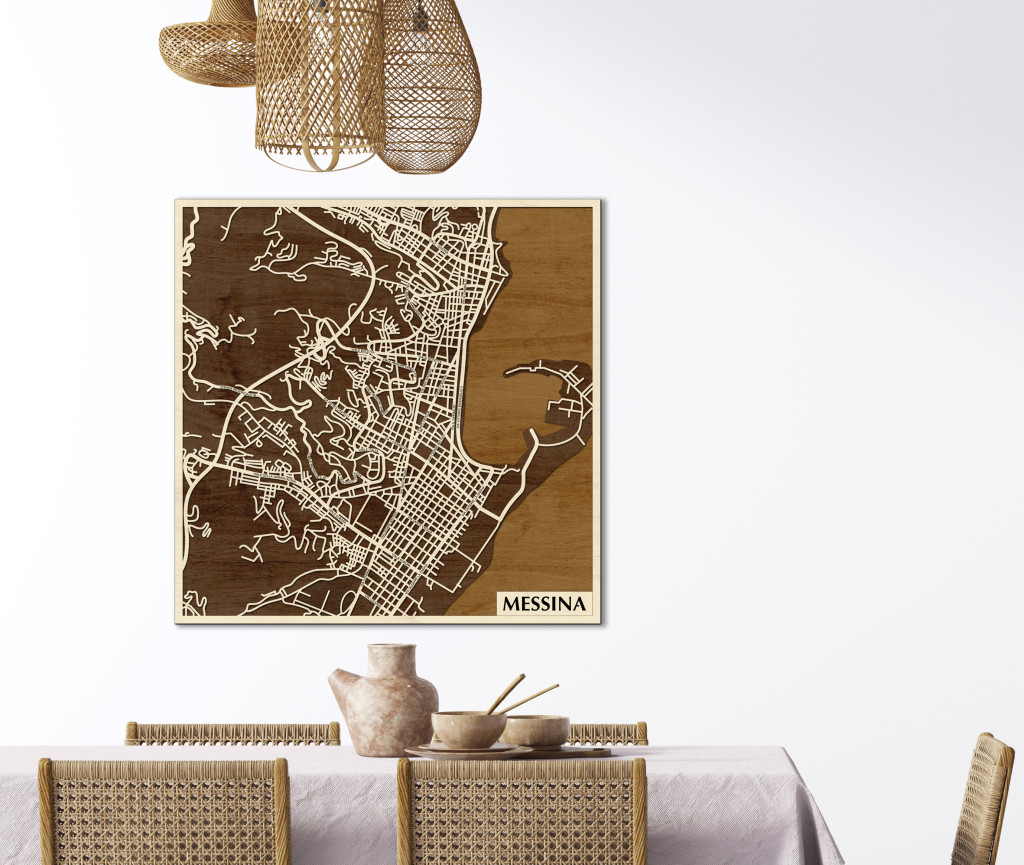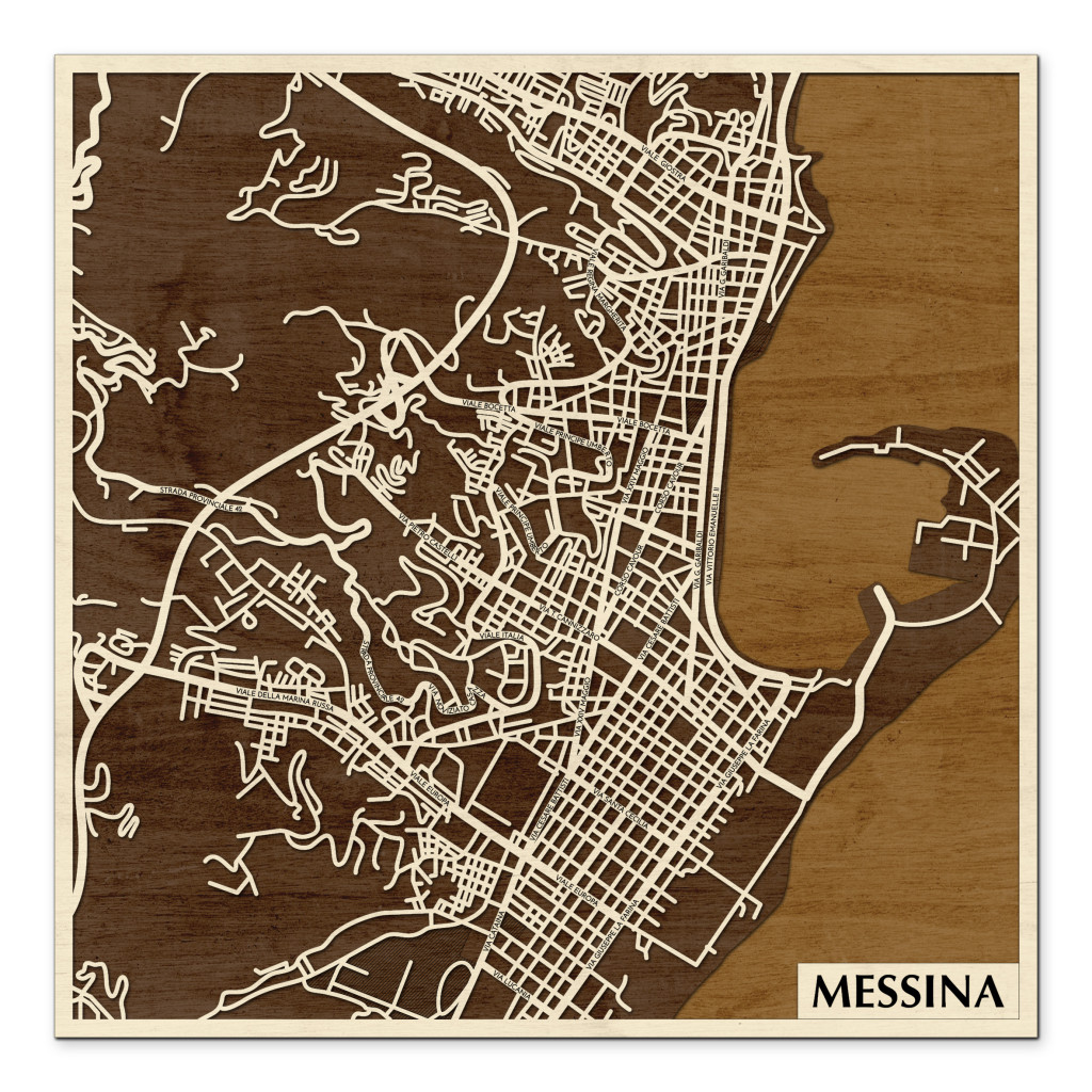 Messina 3D fa várostérkép fali dekoráció – Natura Products