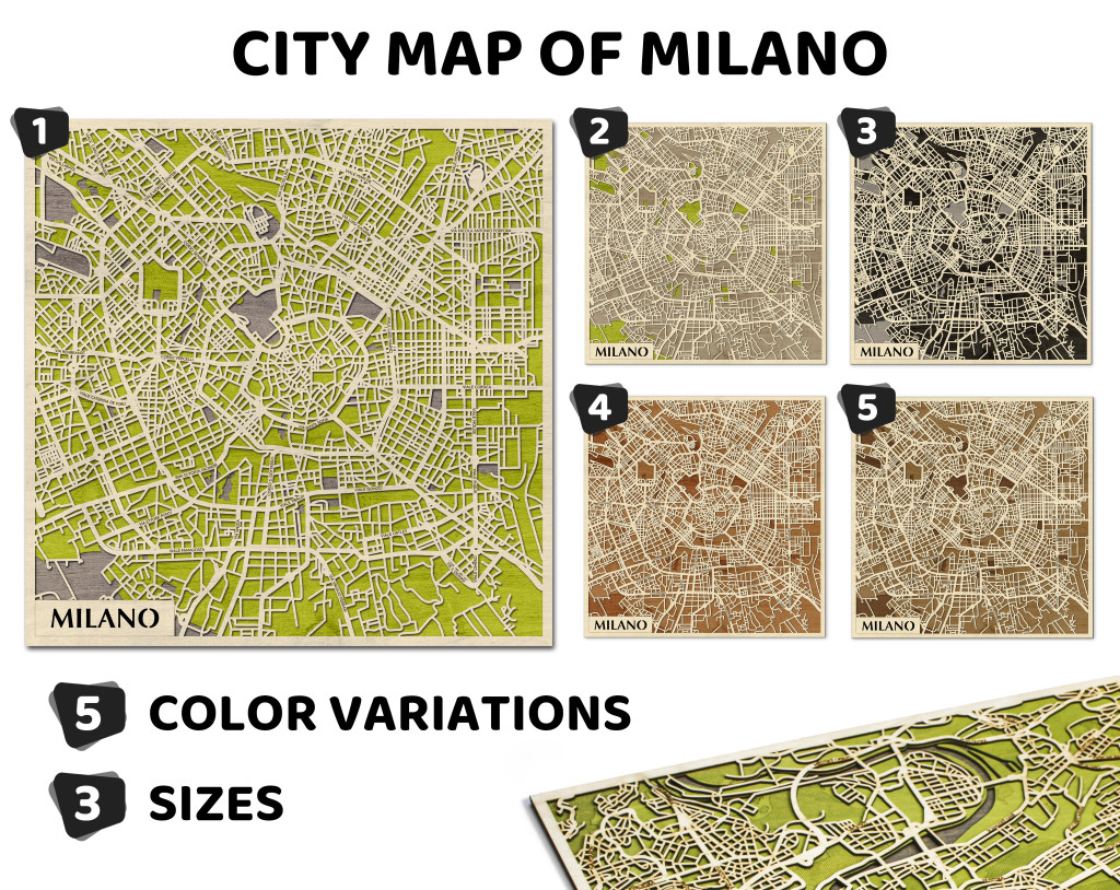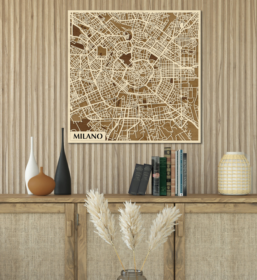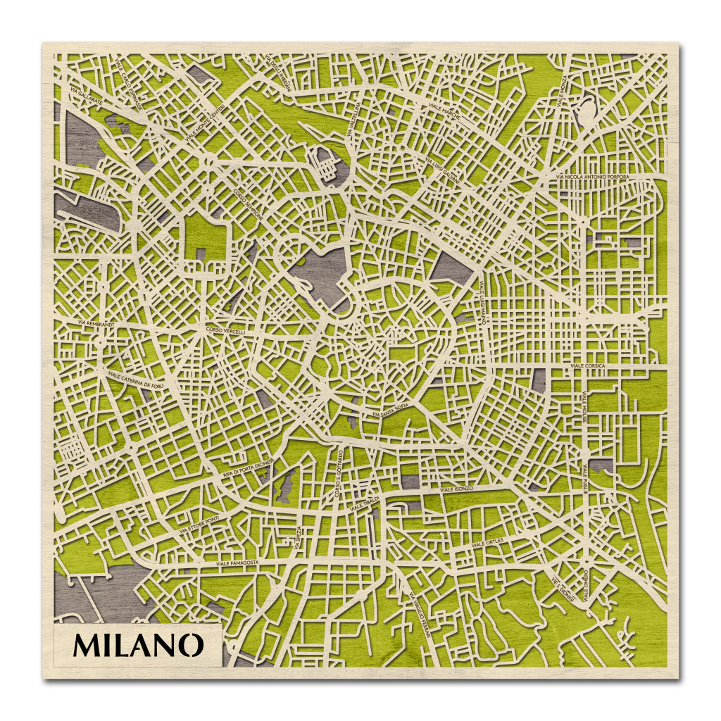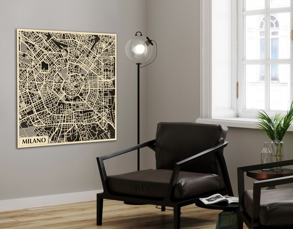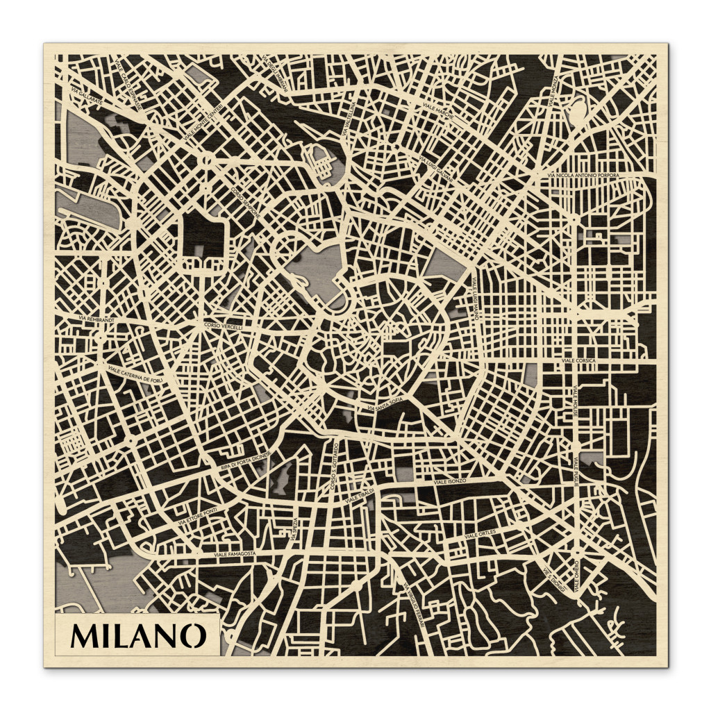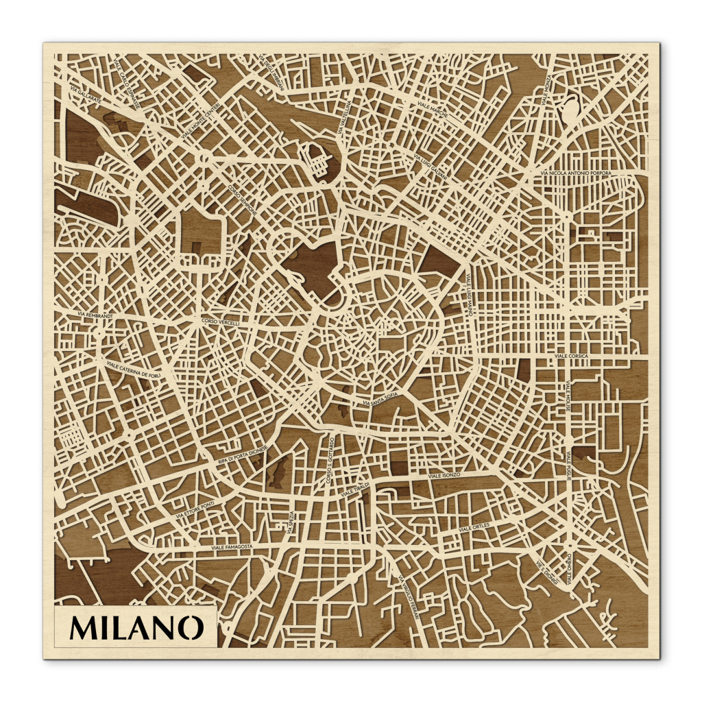 Milánó – Milano 3D fa várostérkép fali dekoráció – Natura Products
