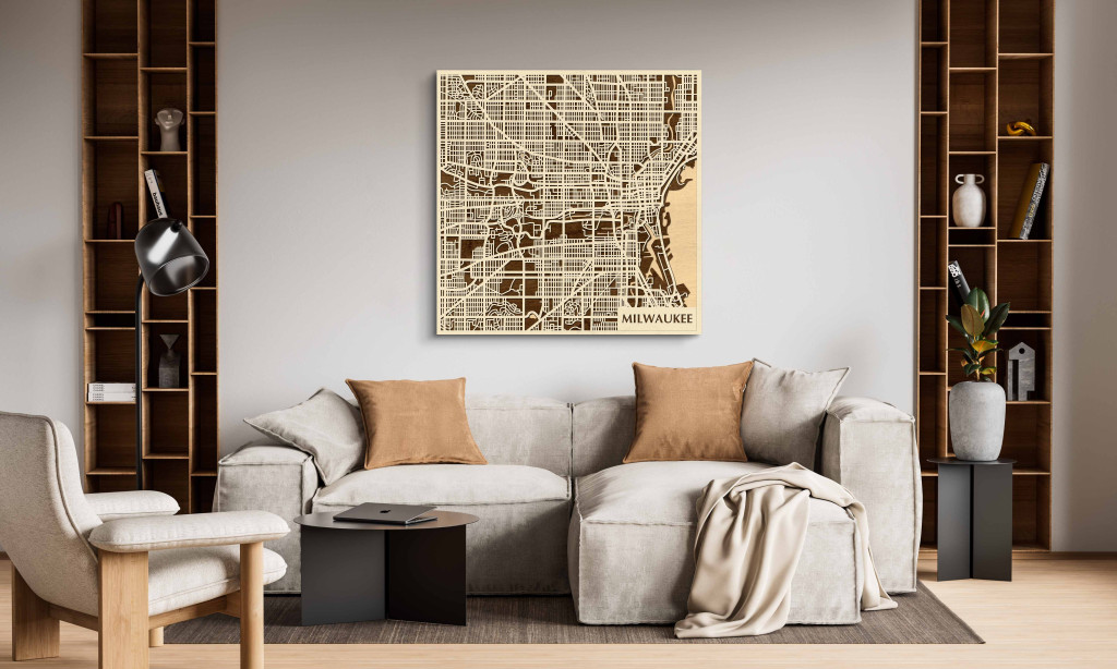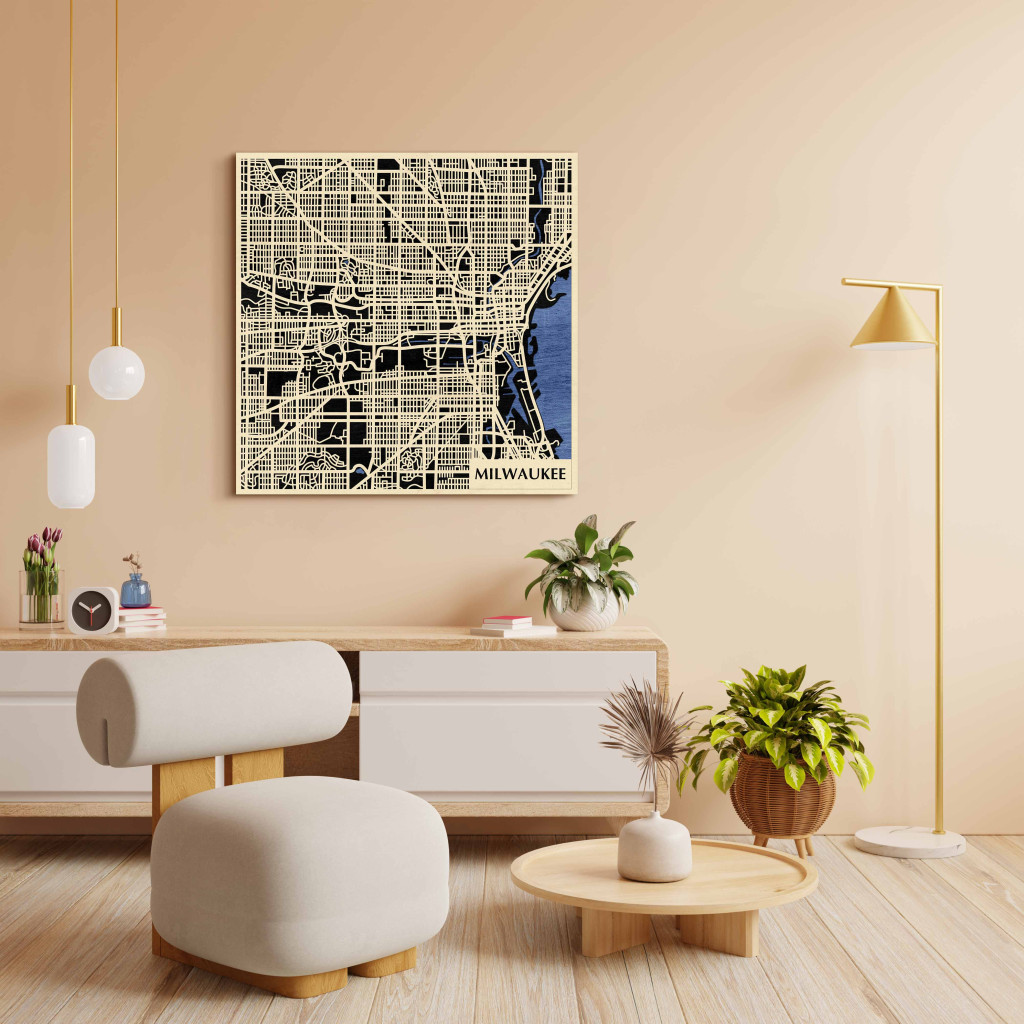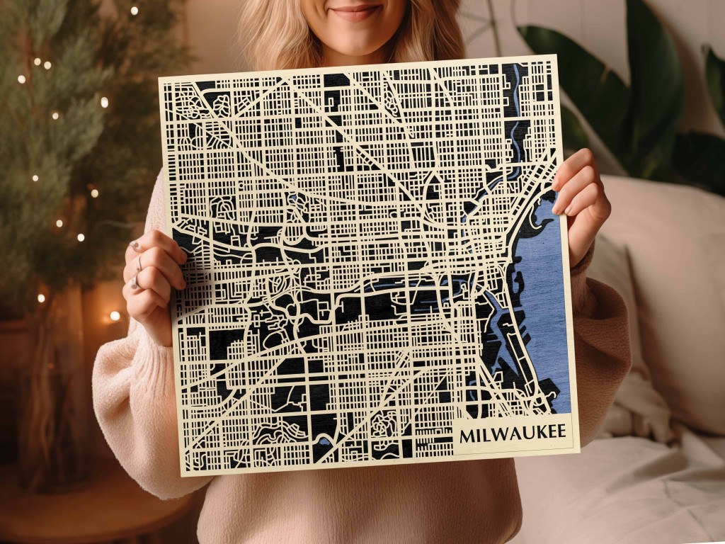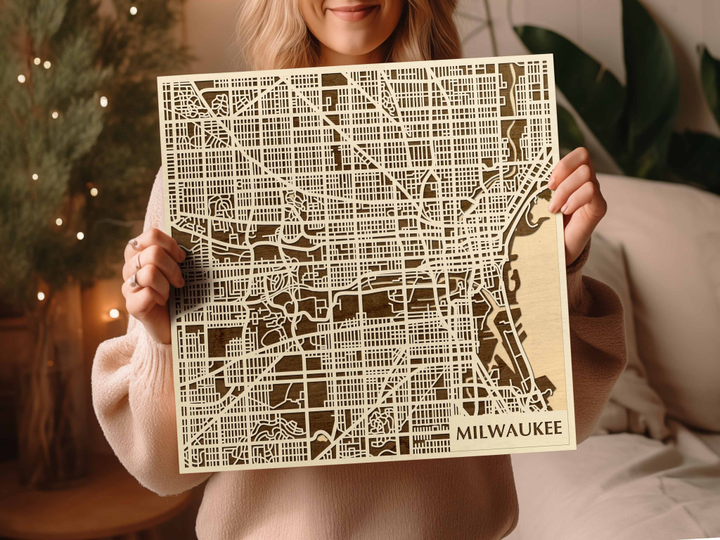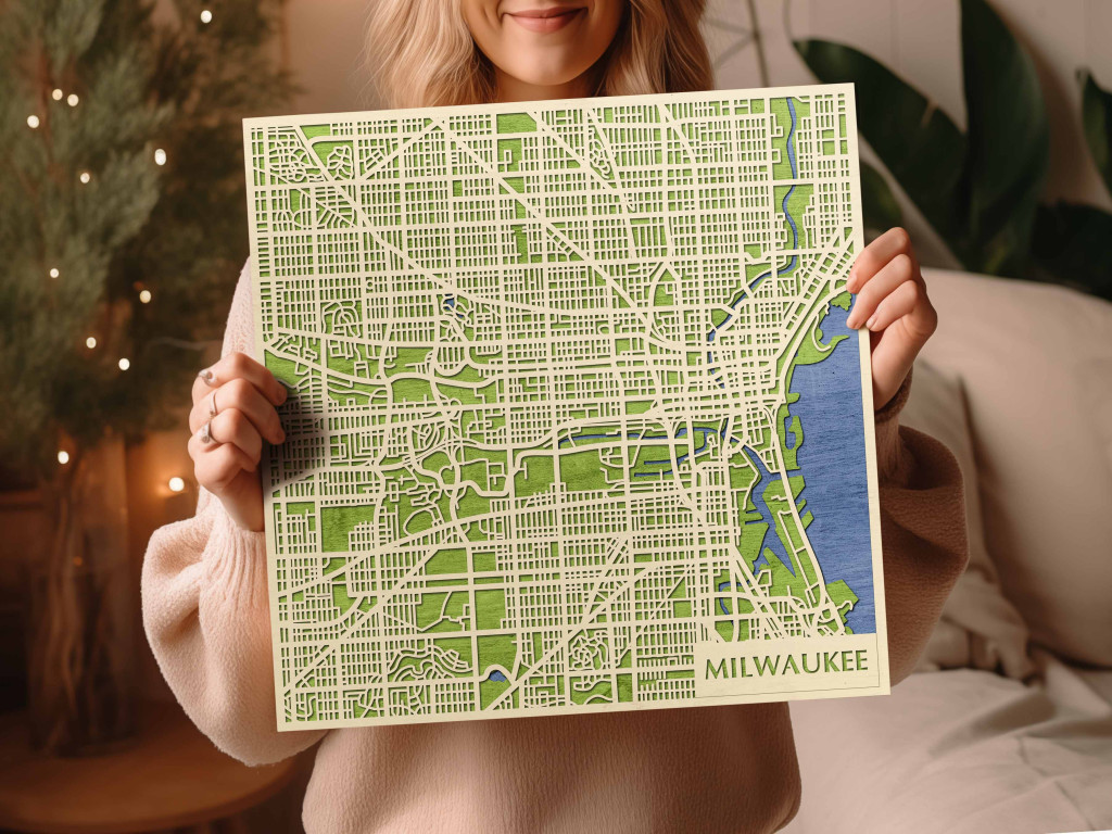Milwaukee 3D fa várostérkép fali dekoráció – Natura Products