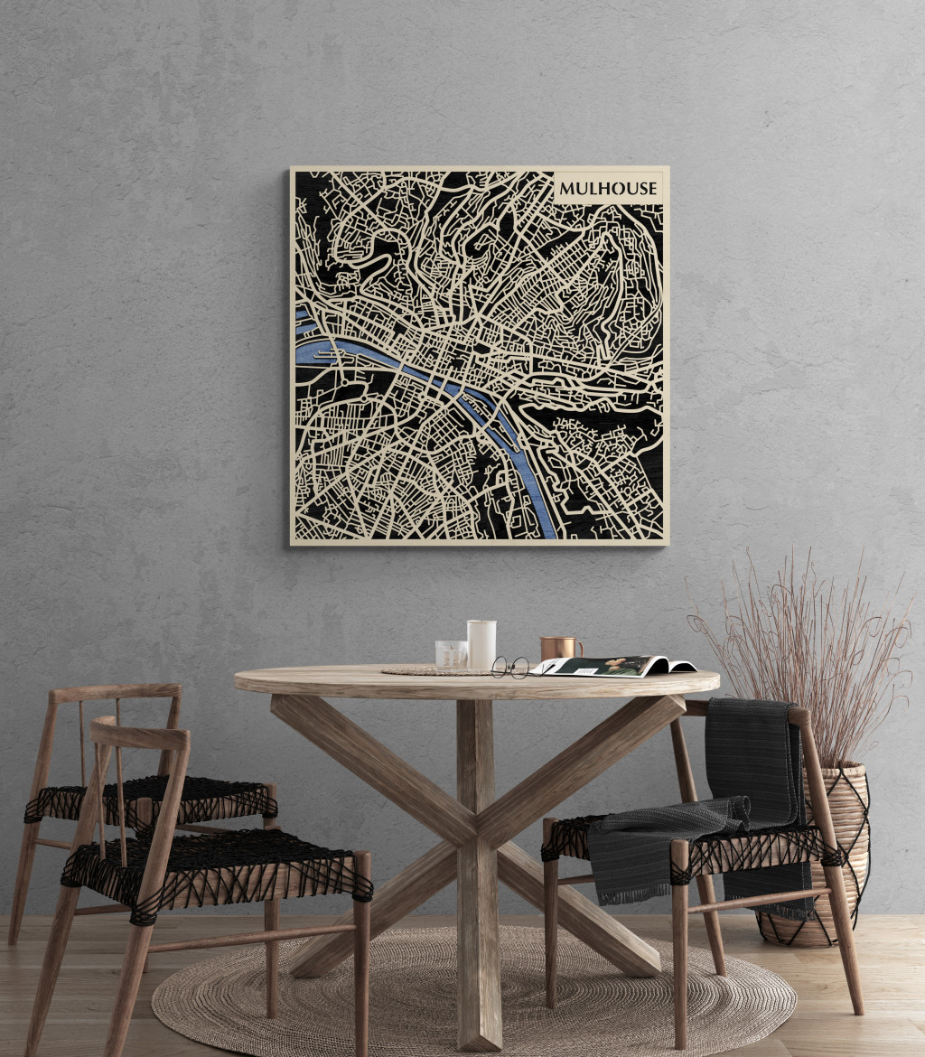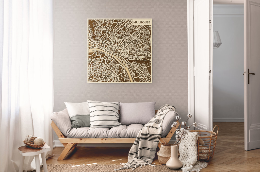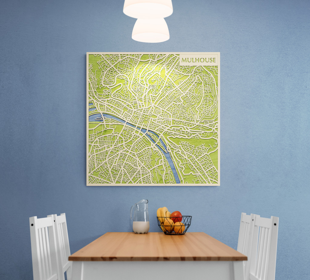 Mulhouse 3D fa várostérkép fali dekoráció – Natura Products