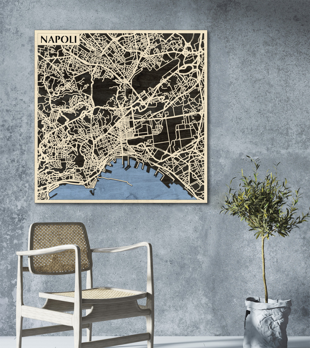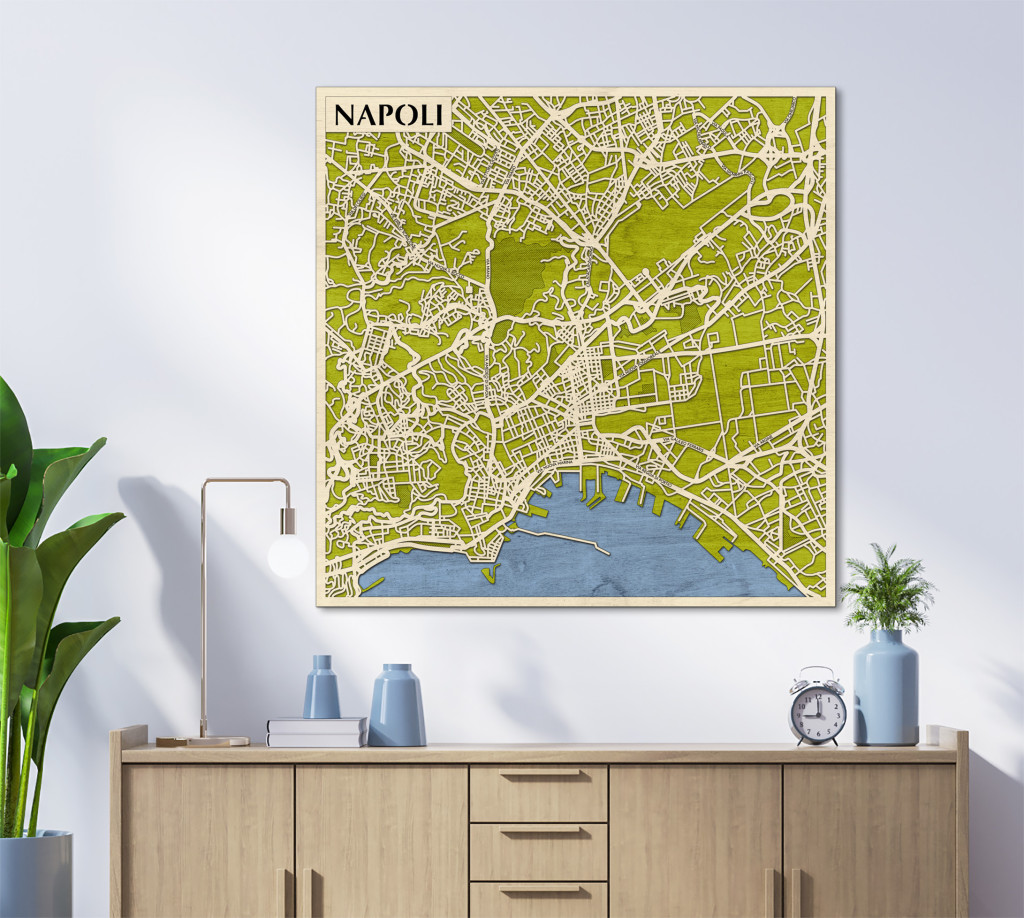 A rétegzett, lézervágott fa dekor Nápoly – Napoli városszövetét, az öböl ívét és a történelmi központ strukturált utcáit emeli ki tiszta, fókuszált kontúrokkal. A fa természetes textúrája barátságos, nyugodt jelenlétet ad, miközben a grafikus rajzolat rendezett, modern fókuszpontot teremt. Telepítése gyors és tiszta: fúrás nélkül, kétoldalas ragasztószalaggal javasolt rögzíteni sima, por- és zsírmentes, száraz falra. A termék két méretben (48 × 48 cm; 70 × 70 cm) és három színben – Zöld (természetközeli), Fekete (letisztult kontraszt), Ében (elegáns mélység) – kapható, így a belső tér arányaihoz és stílusához igazítható. Ajándékként is univerzális, visszafogott és időtálló megjelenéssel.