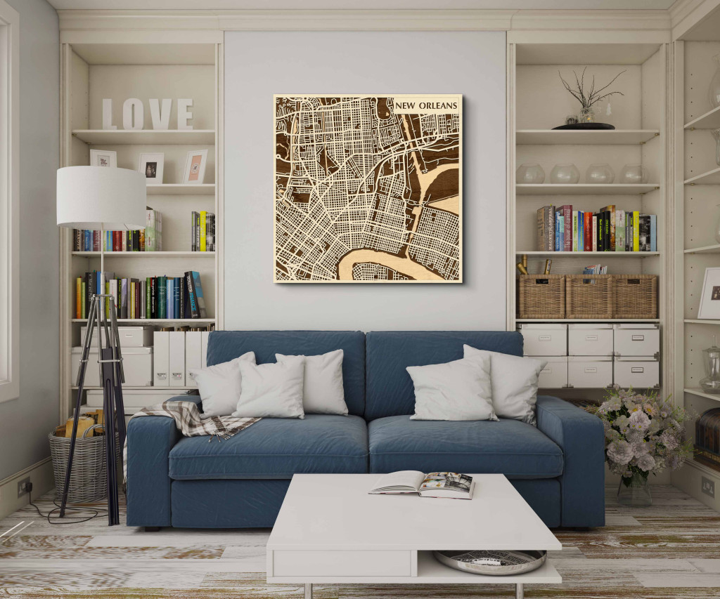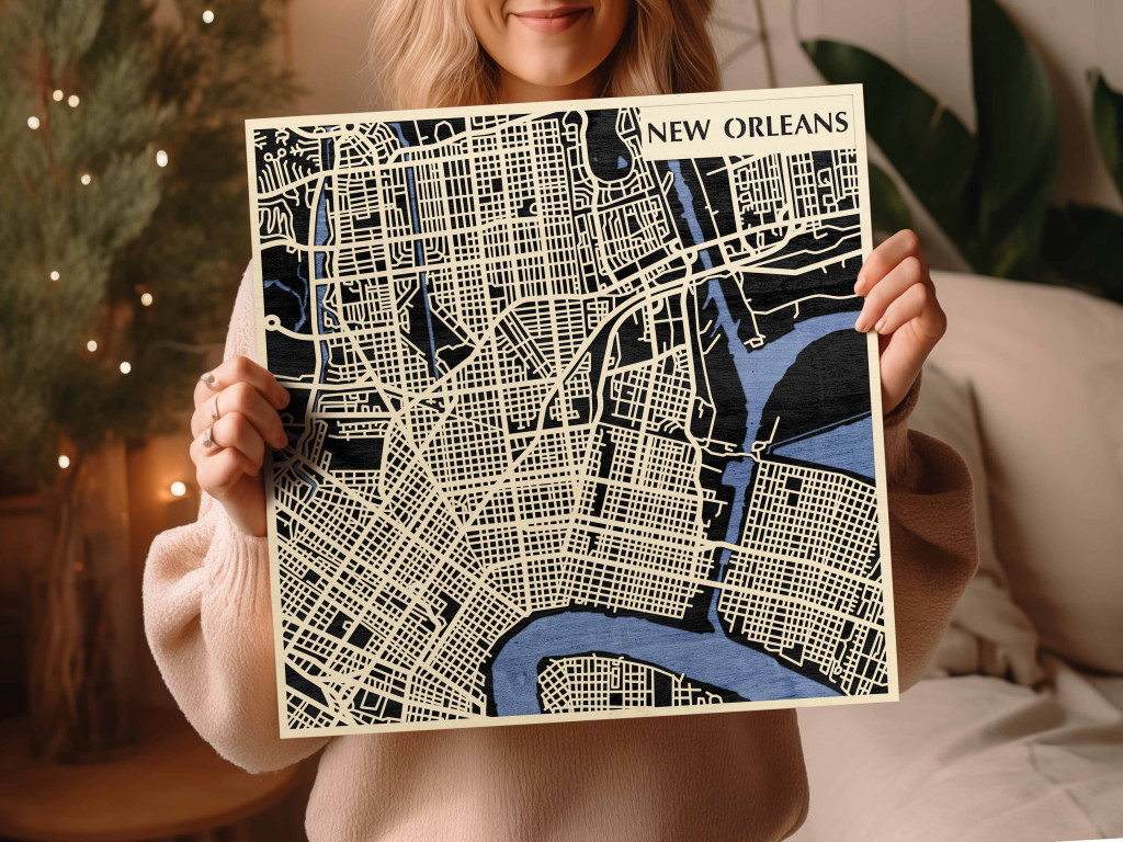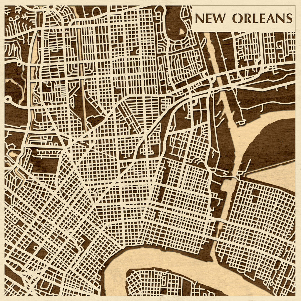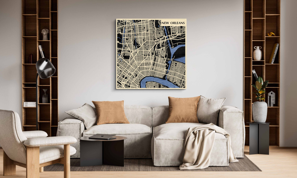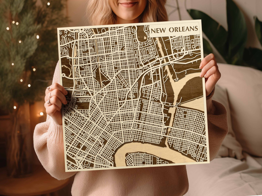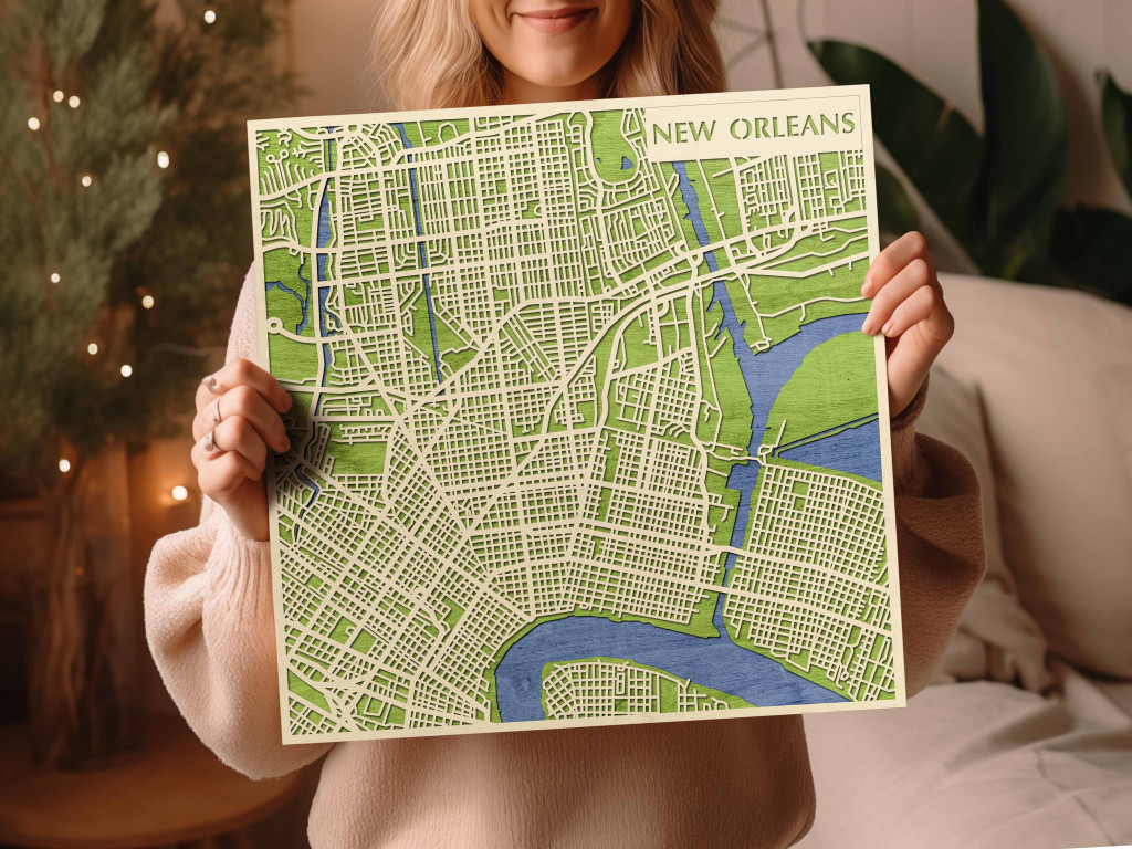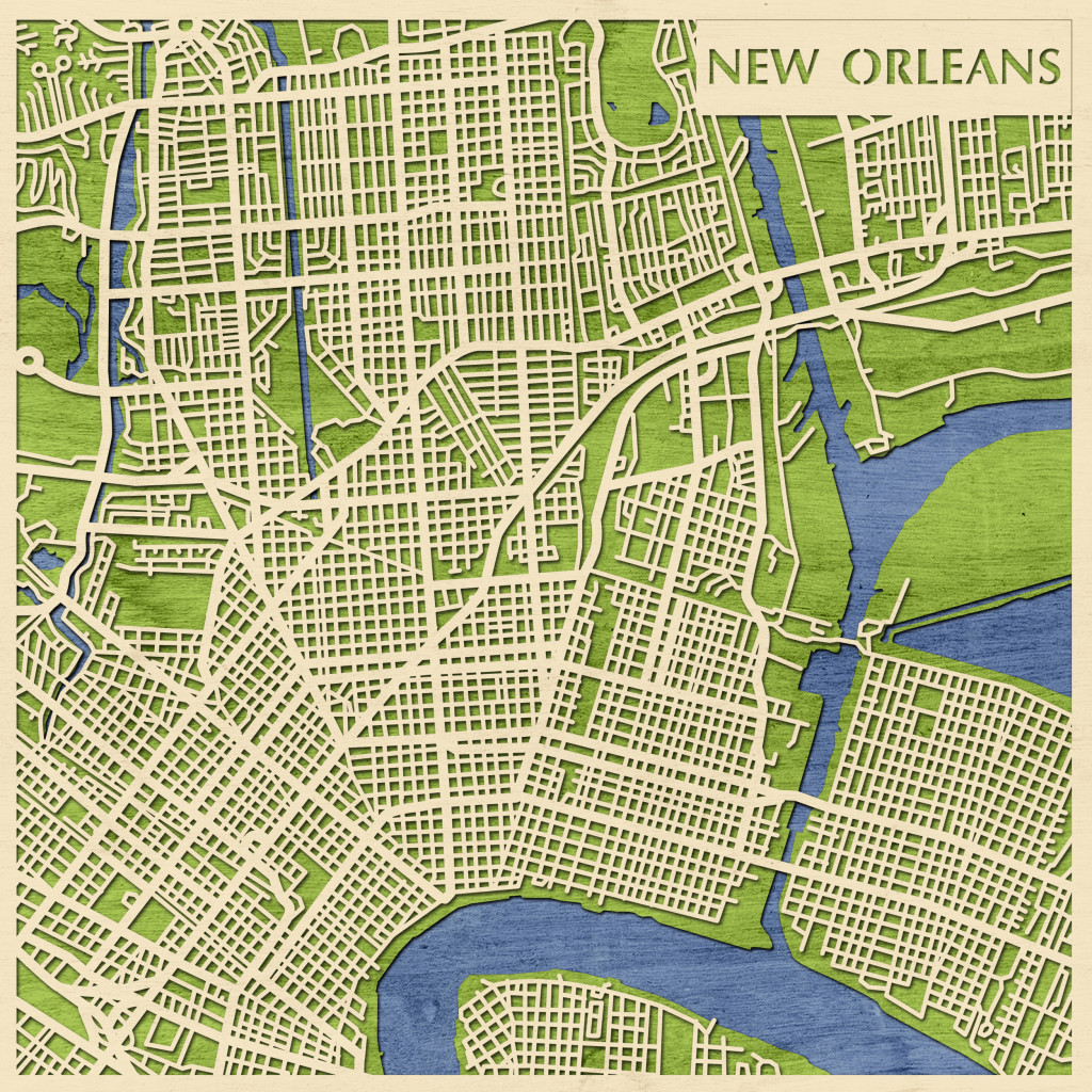 New Orleans 3D fa várostérkép fali dekoráció – Natura Products