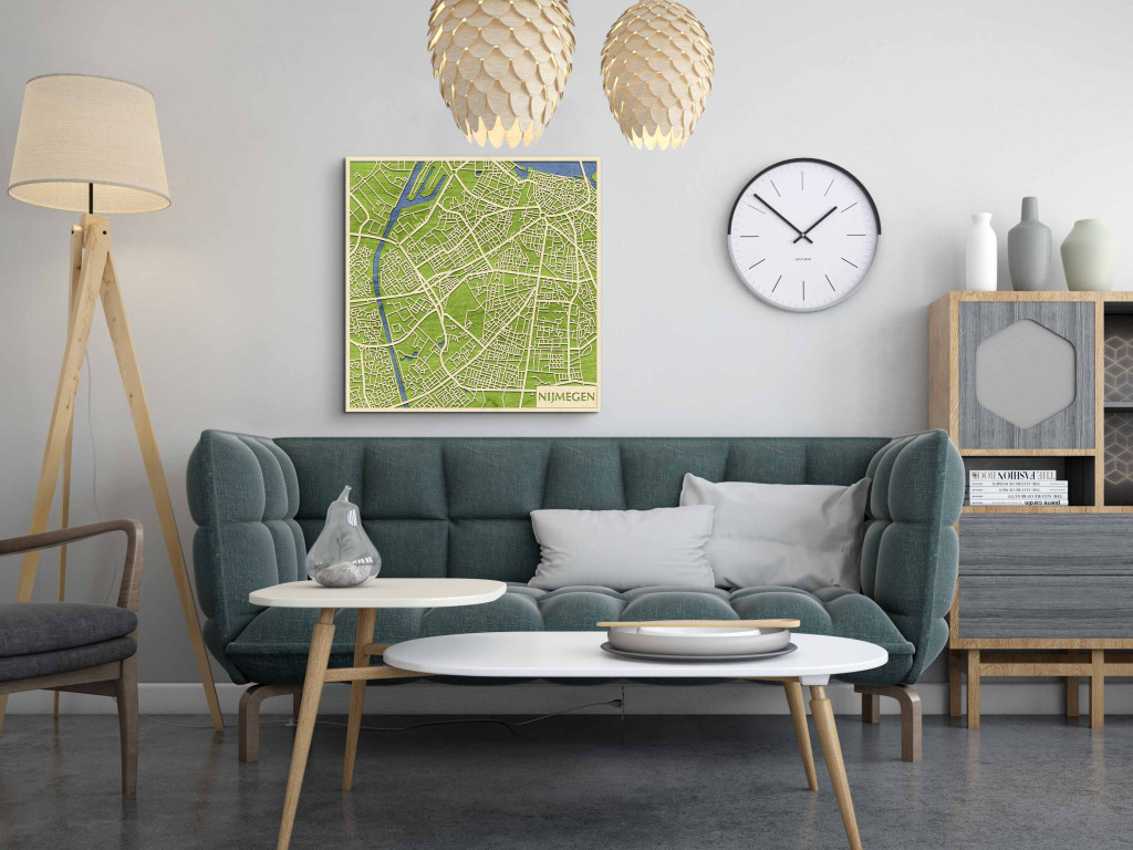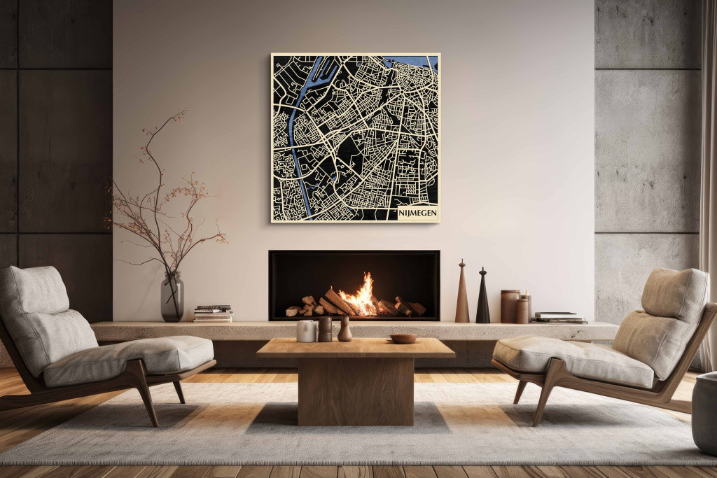 A rétegzett, lézervágott fa dekor Nijmegen városszövetét, a folyóparti hidak csomópontjait és a történelmi központ mintázatát emeli ki tiszta, fókuszált kontúrokkal. A fa természetes textúrája barátságos, kiegyensúlyozott jelenlétet ad, miközben a grafikus rajzolat rendezett, modern fókuszpontot teremt. Telepítése gyors és tiszta: fúrás nélkül, kétoldalas ragasztószalaggal javasolt felhelyezni sima, por- és zsírmentes, száraz falra. A termék két méretben (48 × 48 cm; 70 × 70 cm) és három színben – Zöld (természetközeli), Fekete (letisztult kontraszt), Ében (elegáns mélység) – kapható, így a belső tér arányaihoz és stílusához igazítható. Ajándéknak is kiváló, visszafogott és időtálló megjelenéssel.