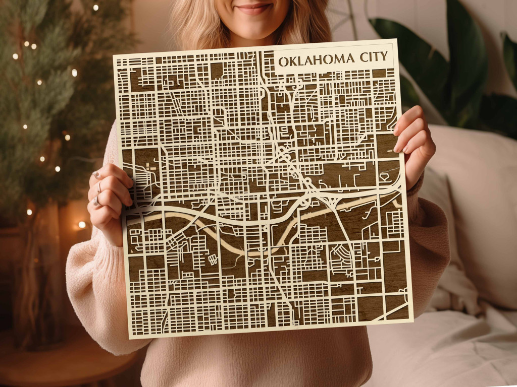Oklahoma City 3D fa várostérkép fali dekoráció – Natura Products