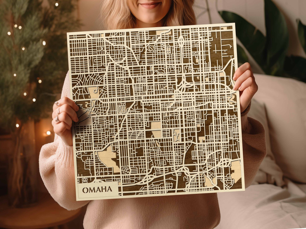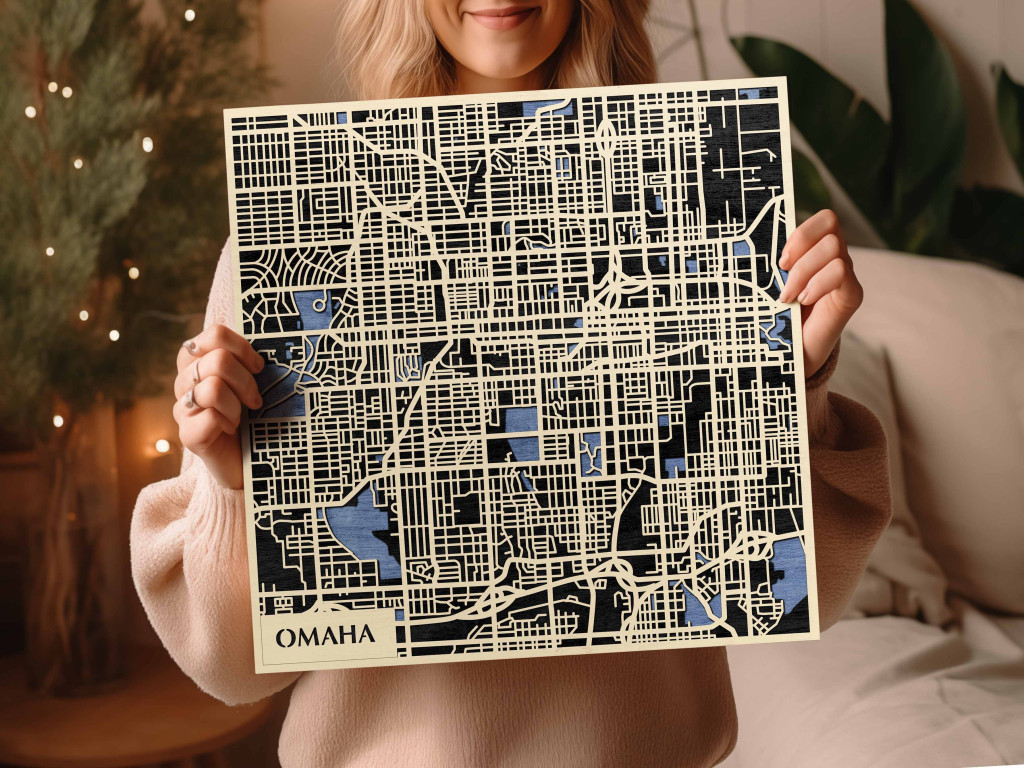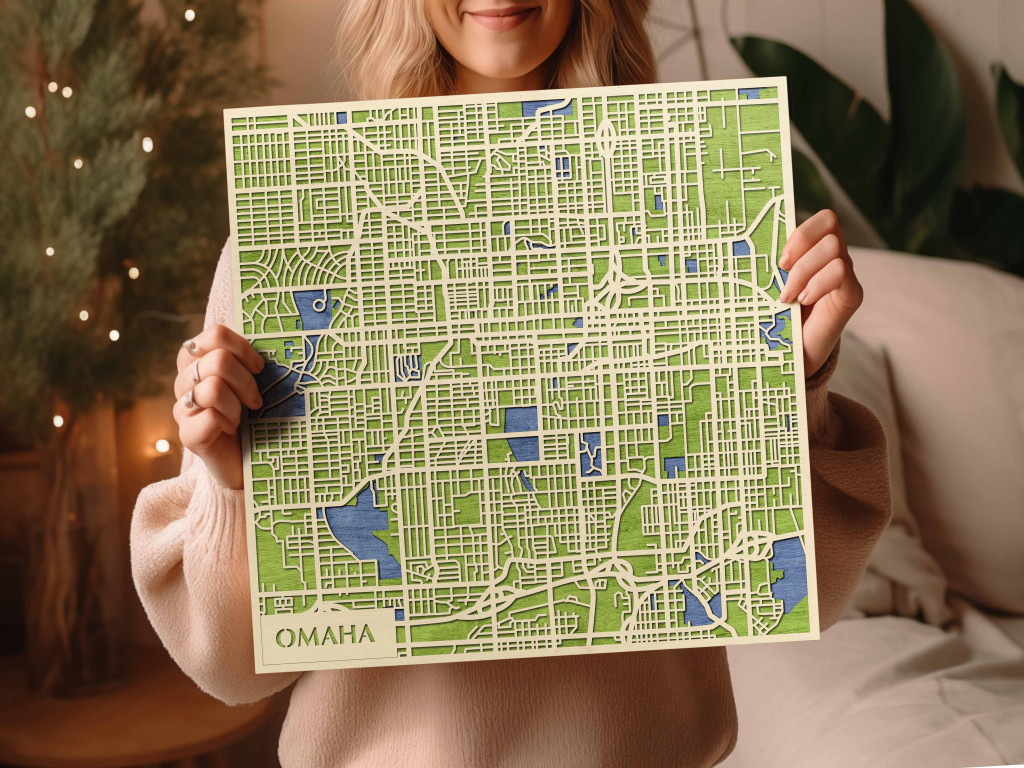 Omaha 3D fa várostérkép fali dekoráció – Natura Products