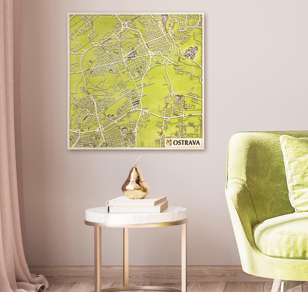 A rétegzett, lézervágott fa dekor Ostrava városszövetét, a folyók által tagolt szerkezetet és az ipari örökség környéki tengelyeket emeli ki tiszta, fókuszált kontúrokkal. A fa természetes textúrája barátságos, kiegyensúlyozott jelenlétet ad, miközben a grafikus rajzolat rendezett, modern fókuszpontot teremt. Telepítése kényelmes és tiszta: fúrás nélkül, kétoldalas ragasztószalaggal javasolt felhelyezni sima, por- és zsírmentes, száraz falra. A termék két méretben (48 × 48 cm; 70 × 70 cm) és három színben – Zöld (természetközeli), Fekete (letisztult kontraszt), Ében (elegáns mélység) – kapható, így a belső tér arányaihoz és stílusához illeszthető. Ajándéknak is univerzális, visszafogott és időtálló megjelenéssel.