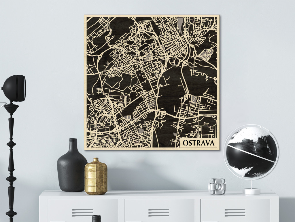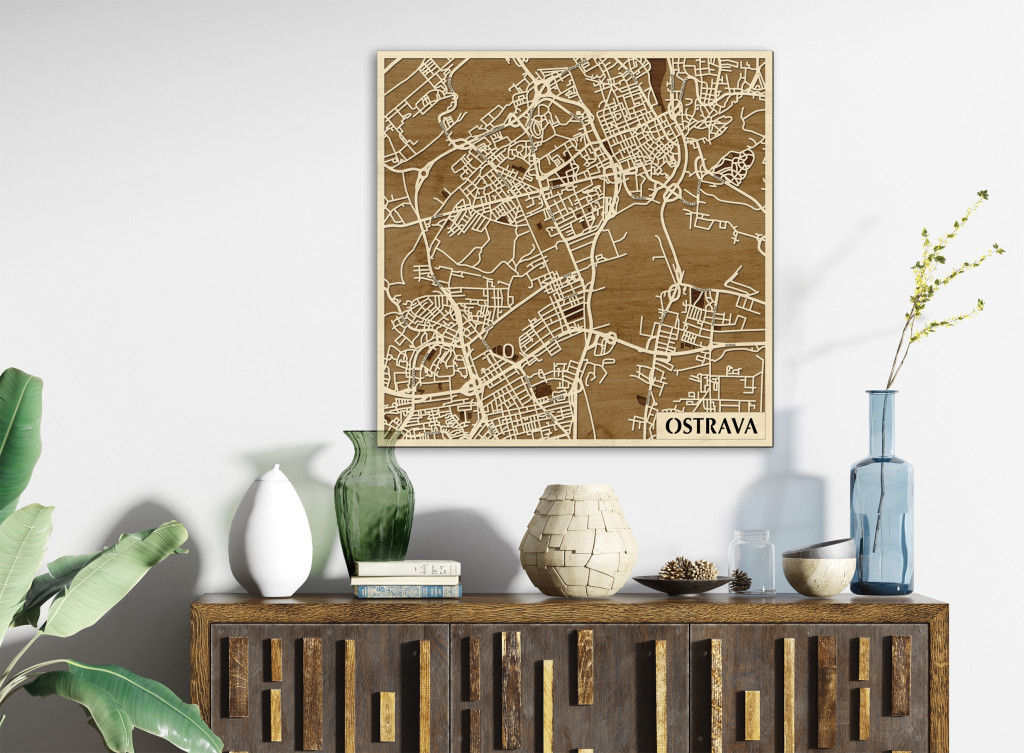 Ostrava 3D fa várostérkép fali dekoráció – Natura Products