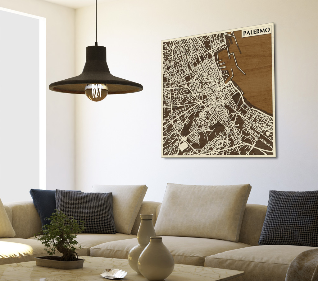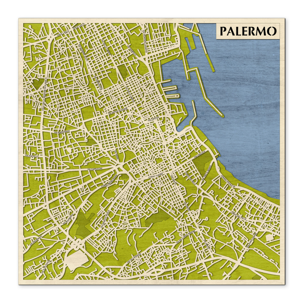 Palermo 3D fa várostérkép fali dekoráció – Natura Products