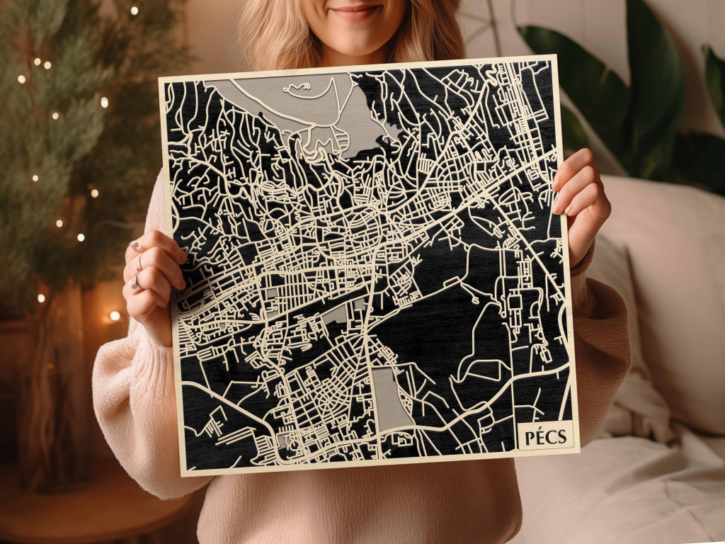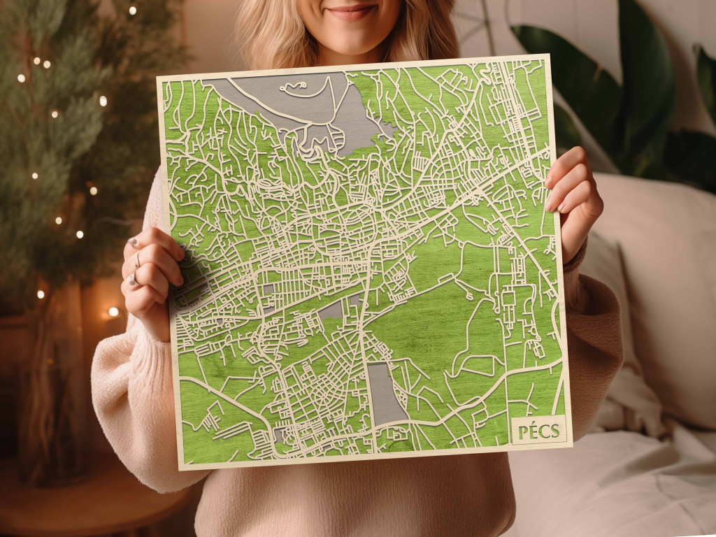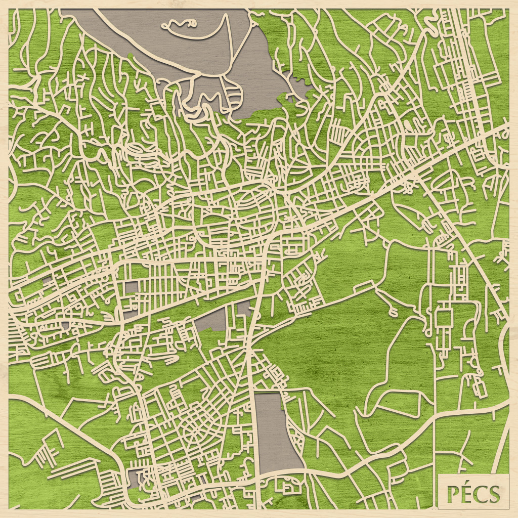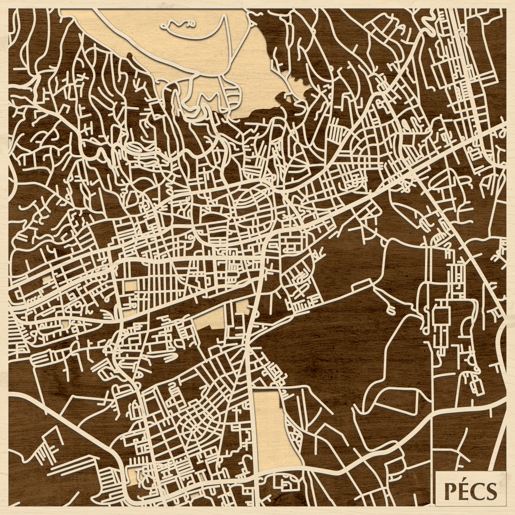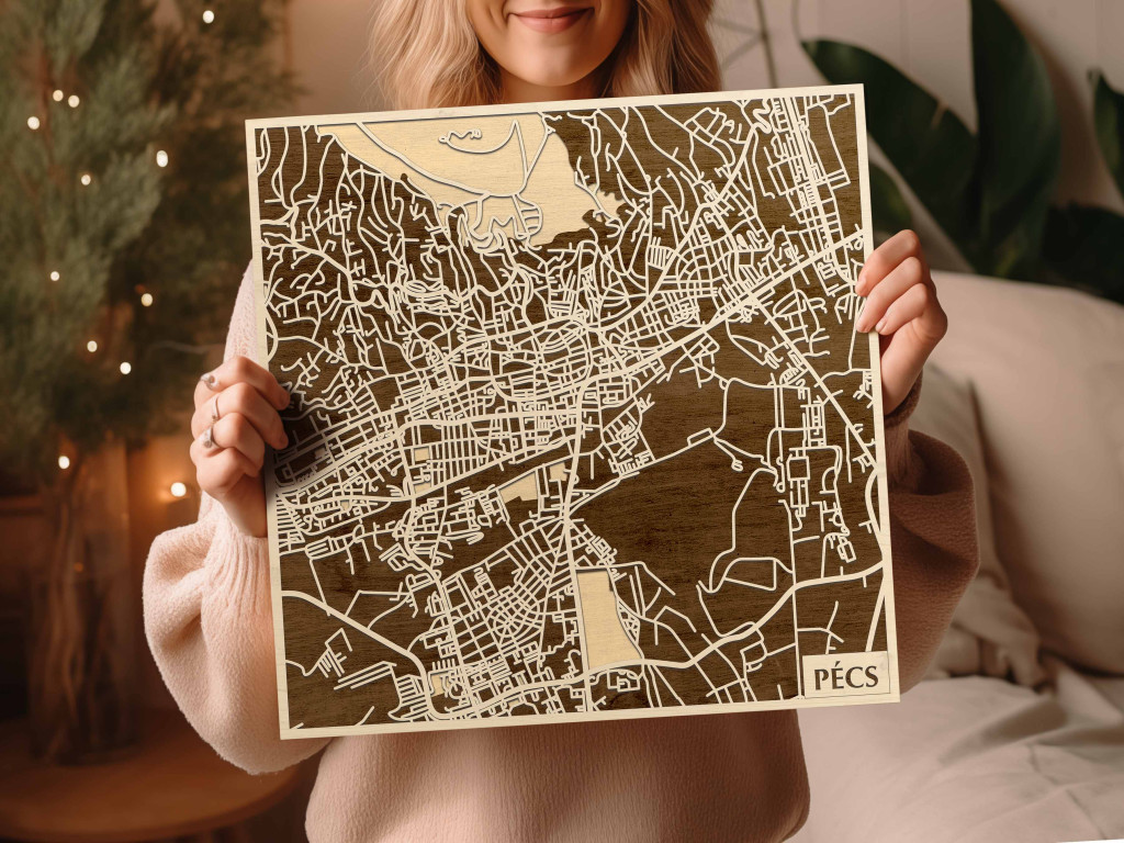 Pécs 3D fa várostérkép fali dekoráció – Natura Products