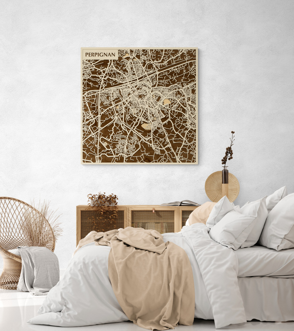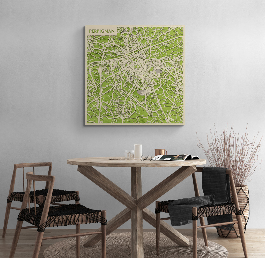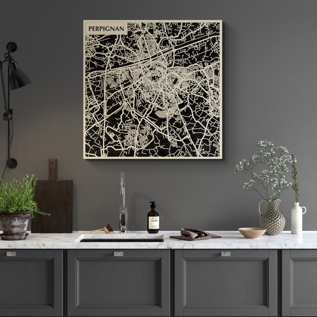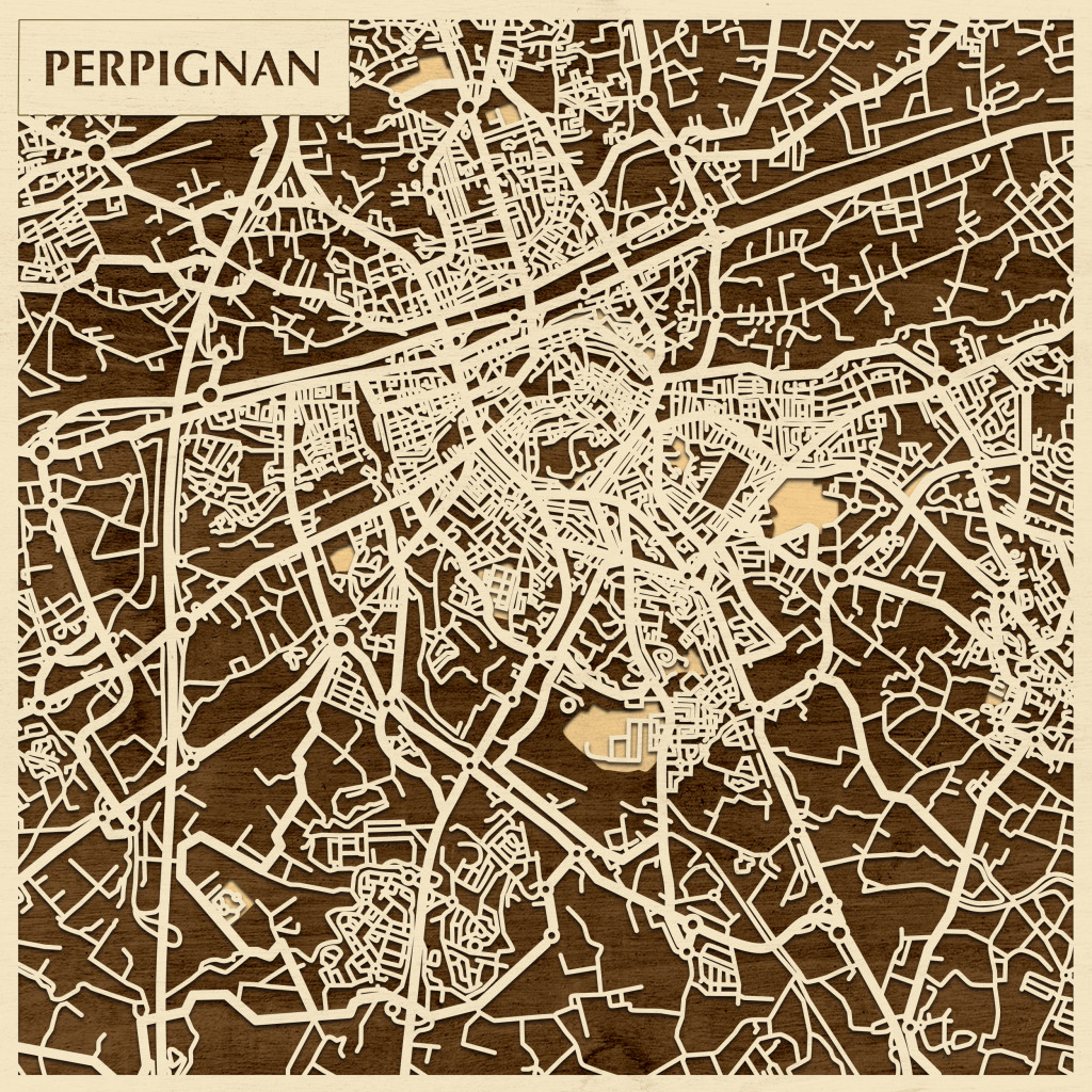 Perpignan 3D fa várostérkép fali dekoráció – Natura Products