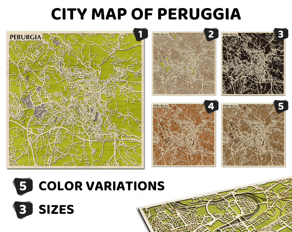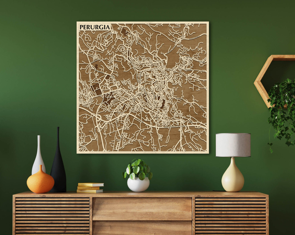 Perugia 3D fa várostérkép fali dekoráció – Natura Products