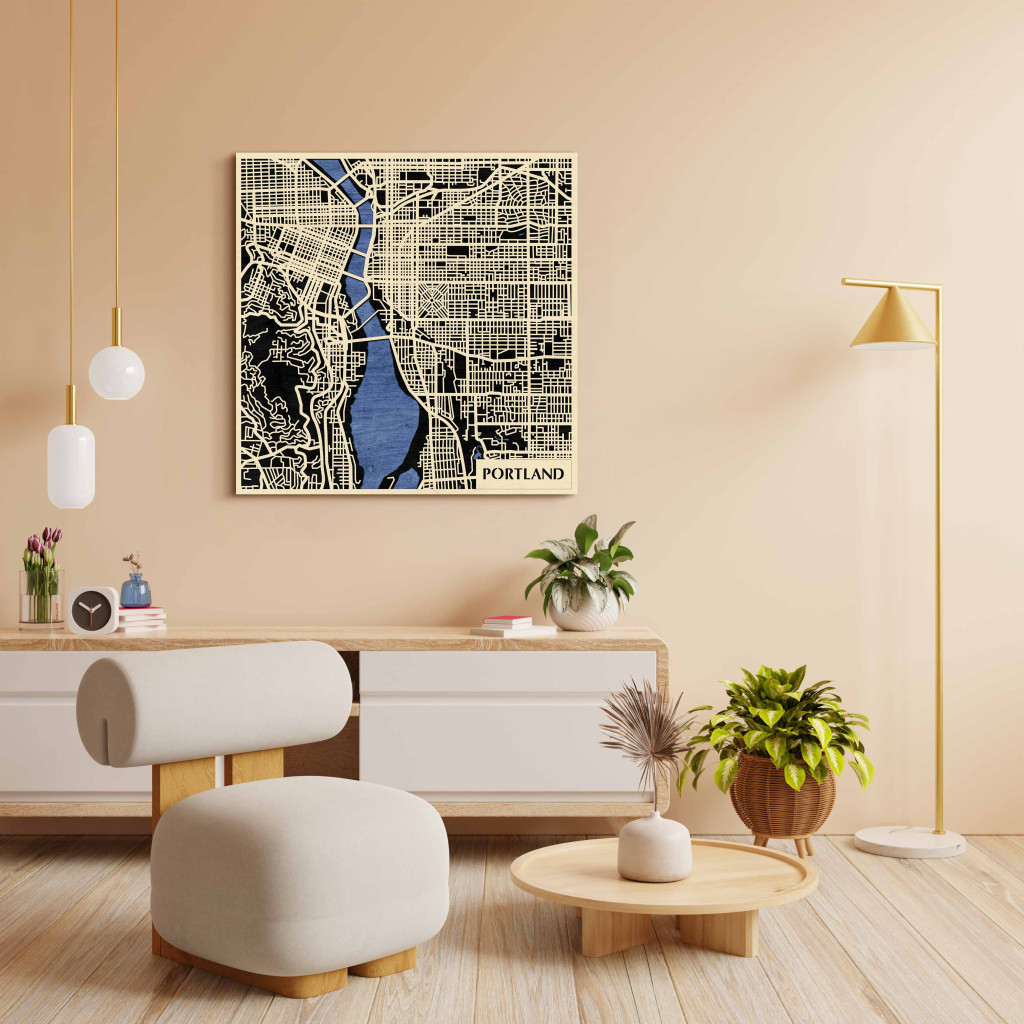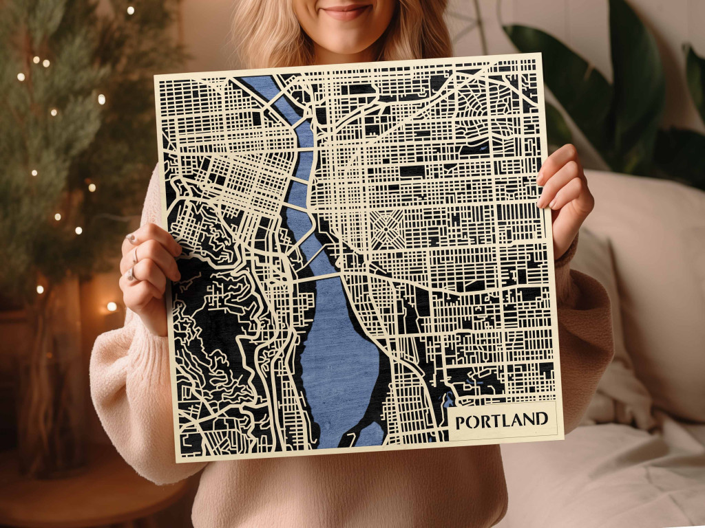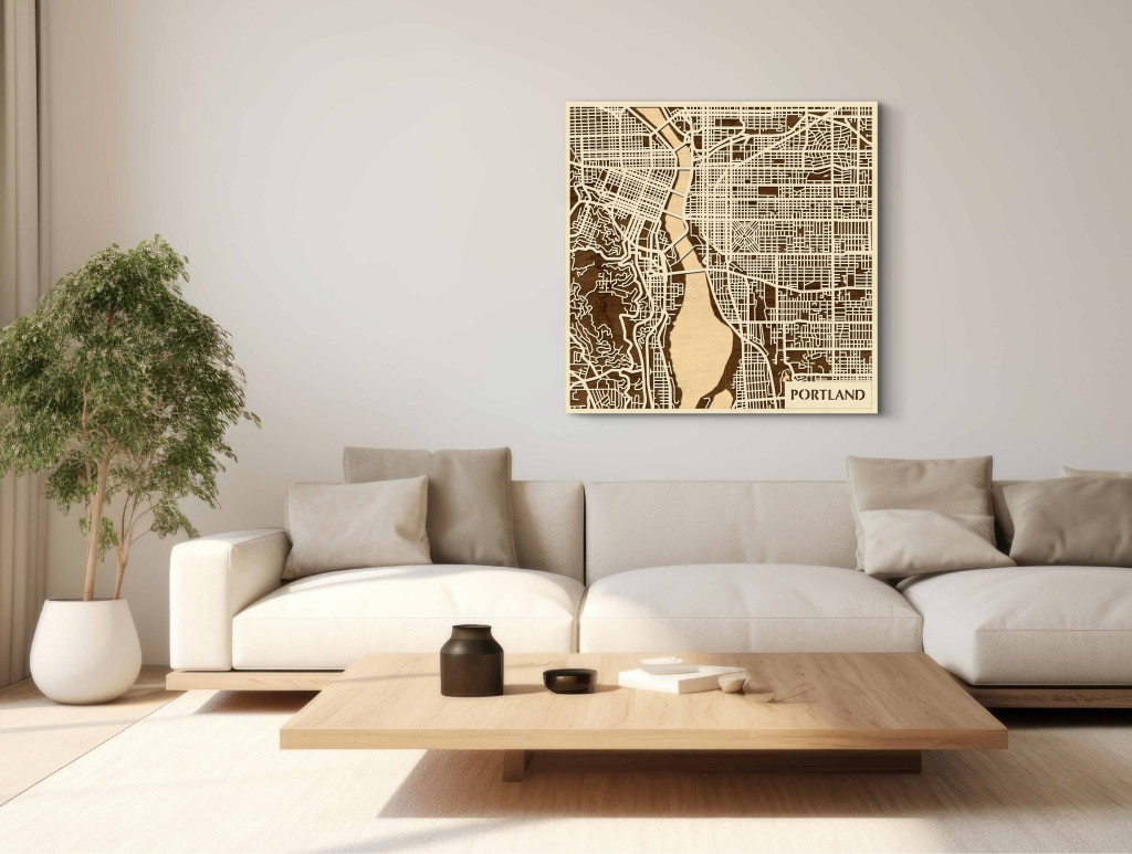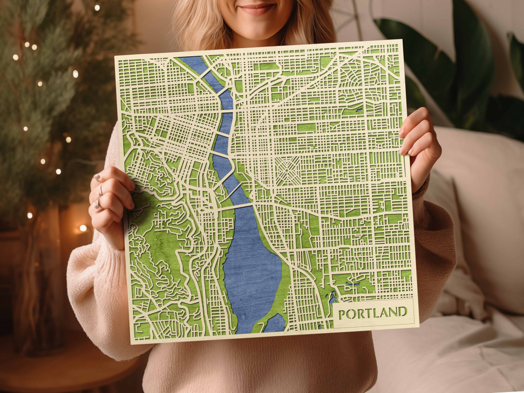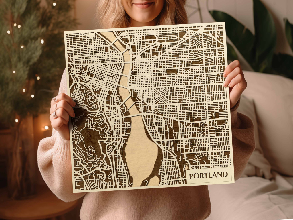 Portland 3D fa várostérkép fali dekoráció – Natura Products