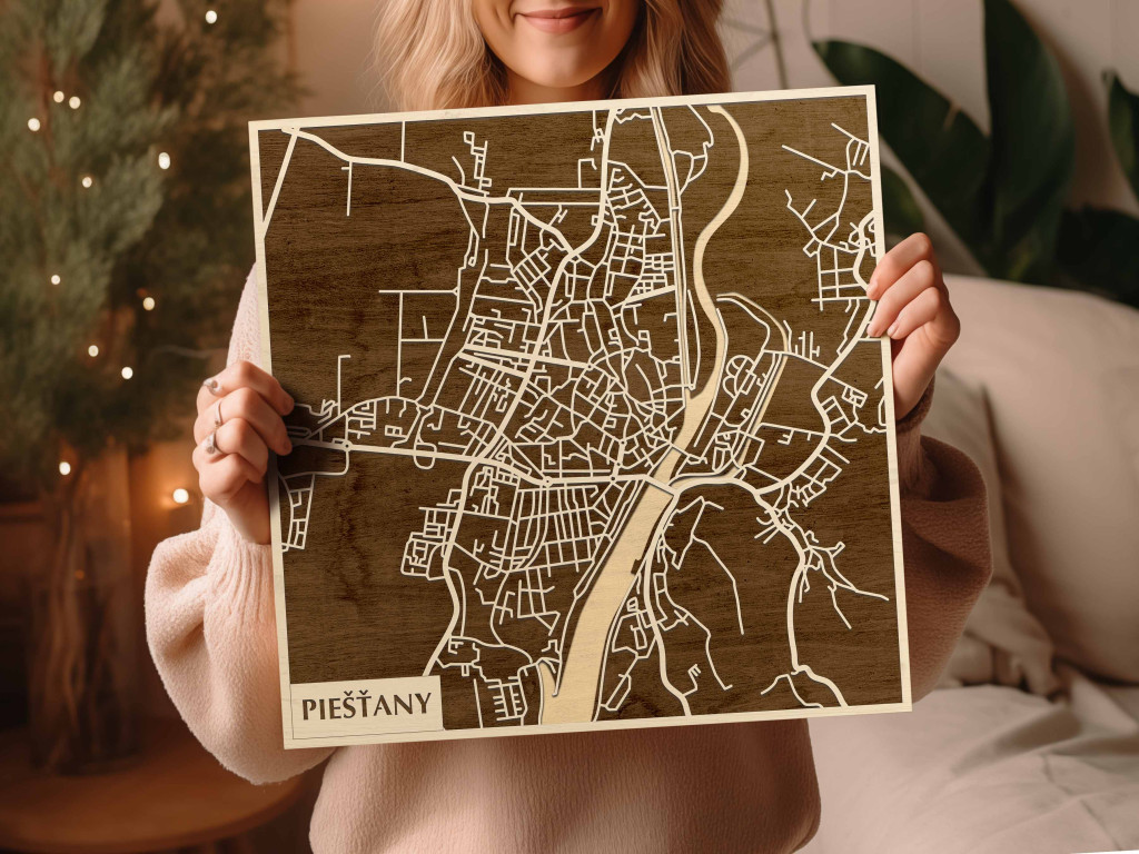Pöstyén – Piešťany 3D fa várostérkép fali dekoráció – Natura Products