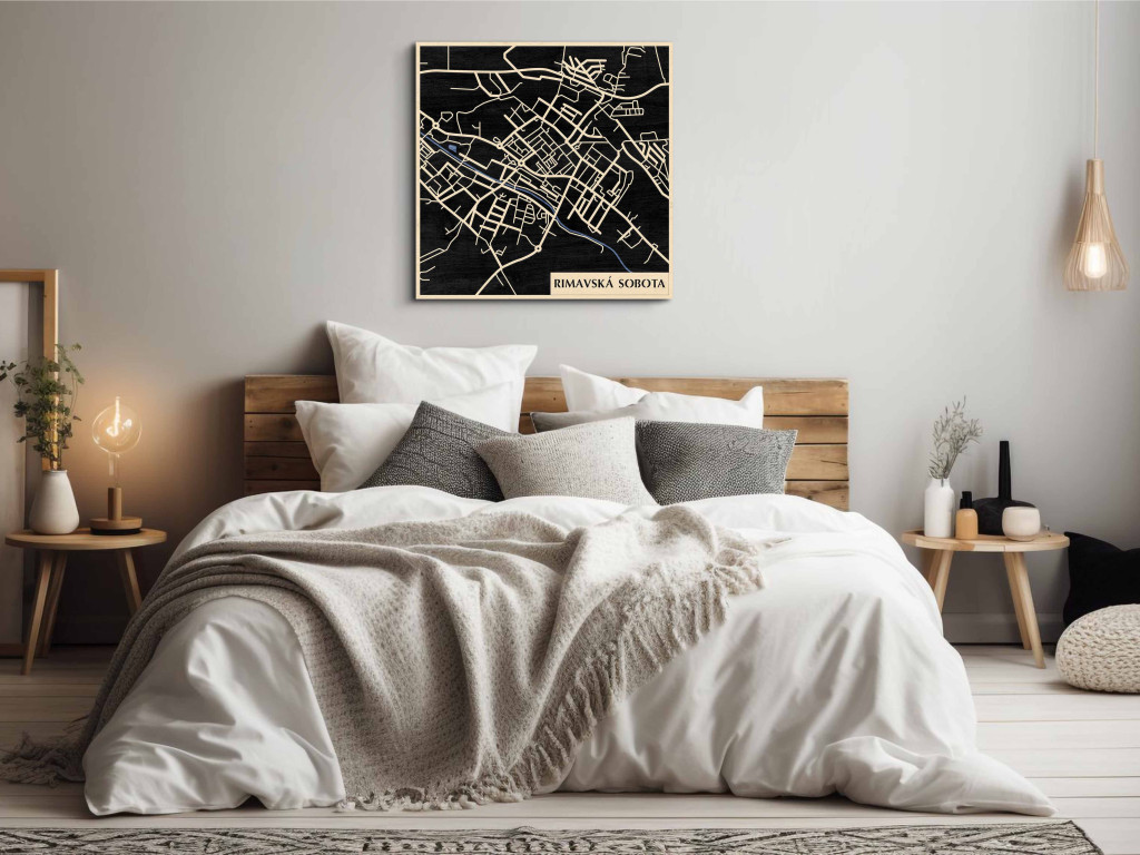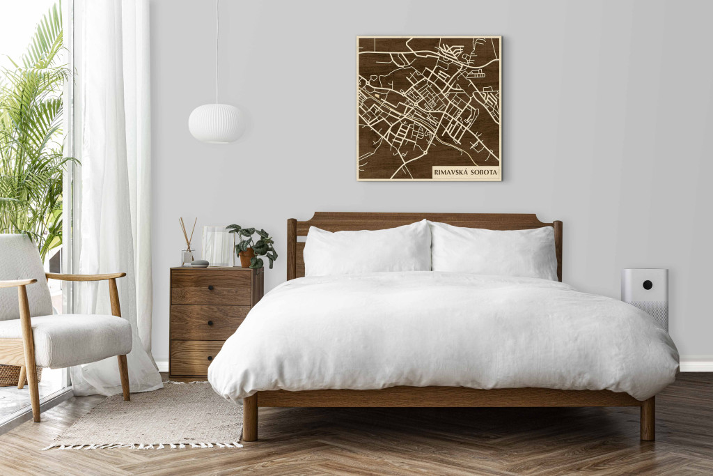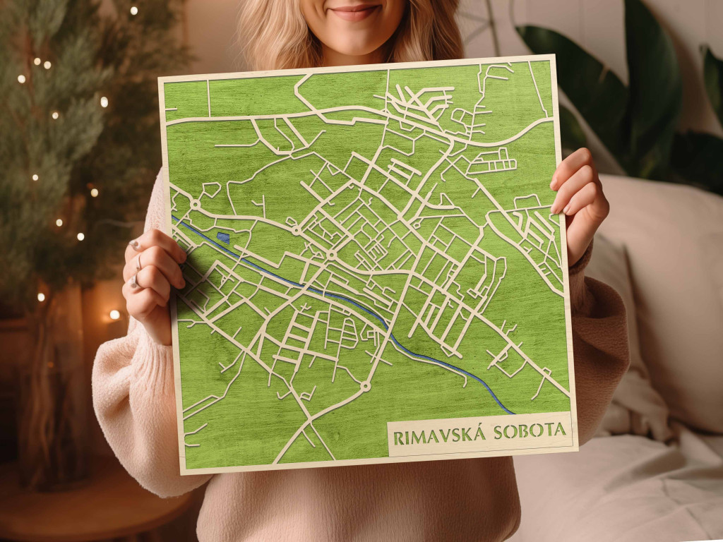A rétegzett, lézervágott fa dekor Rimavská Sobota városszövetét, a főbb csomópontokat és a térségi tengelyek kapcsolódását emeli ki tiszta, fókuszált kontúrokkal. A fa természetes textúrája nyugodt, barátságos jelenlétet biztosít, miközben a grafikus rajzolat rendezett, modern fókuszpontot teremt. Telepítése kényelmes és tiszta: fúrás nélkül, kétoldalas ragasztószalaggal javasolt rögzíteni sima, por- és zsírmentes, száraz falfelületre. A termék két méretben (48 × 48 cm; 70 × 70 cm) és három színben – Zöld (természetközeli), Fekete (letisztult), Ében (elegáns) – kapható. Ajándékként is univerzális, visszafogott és időtálló.