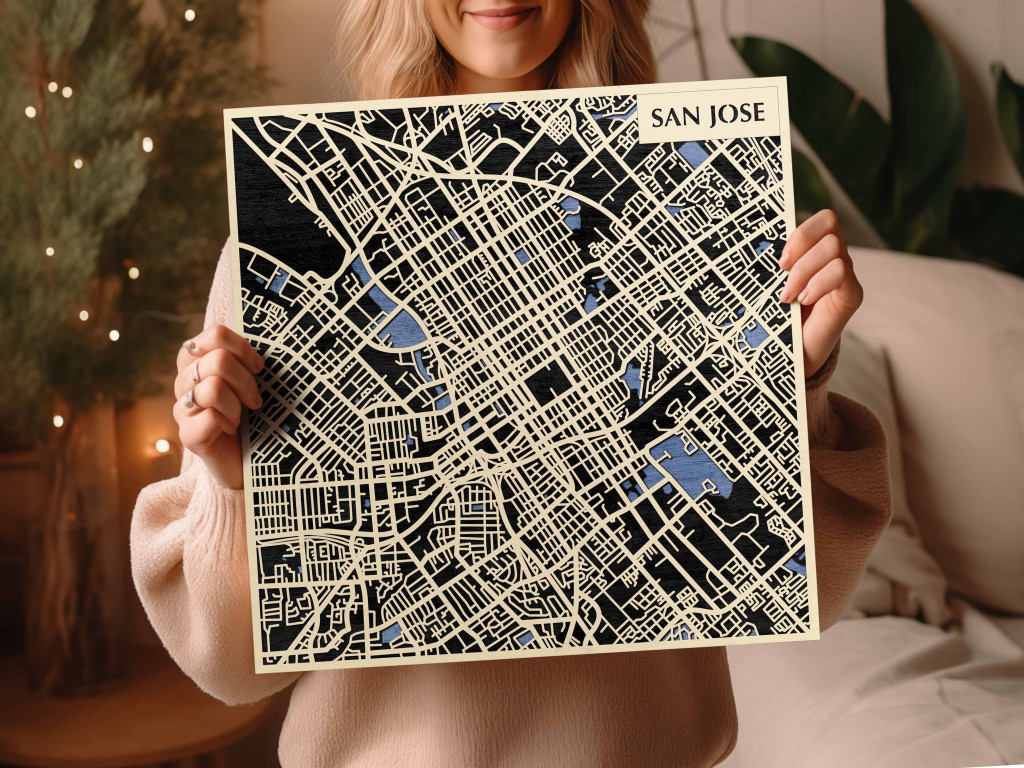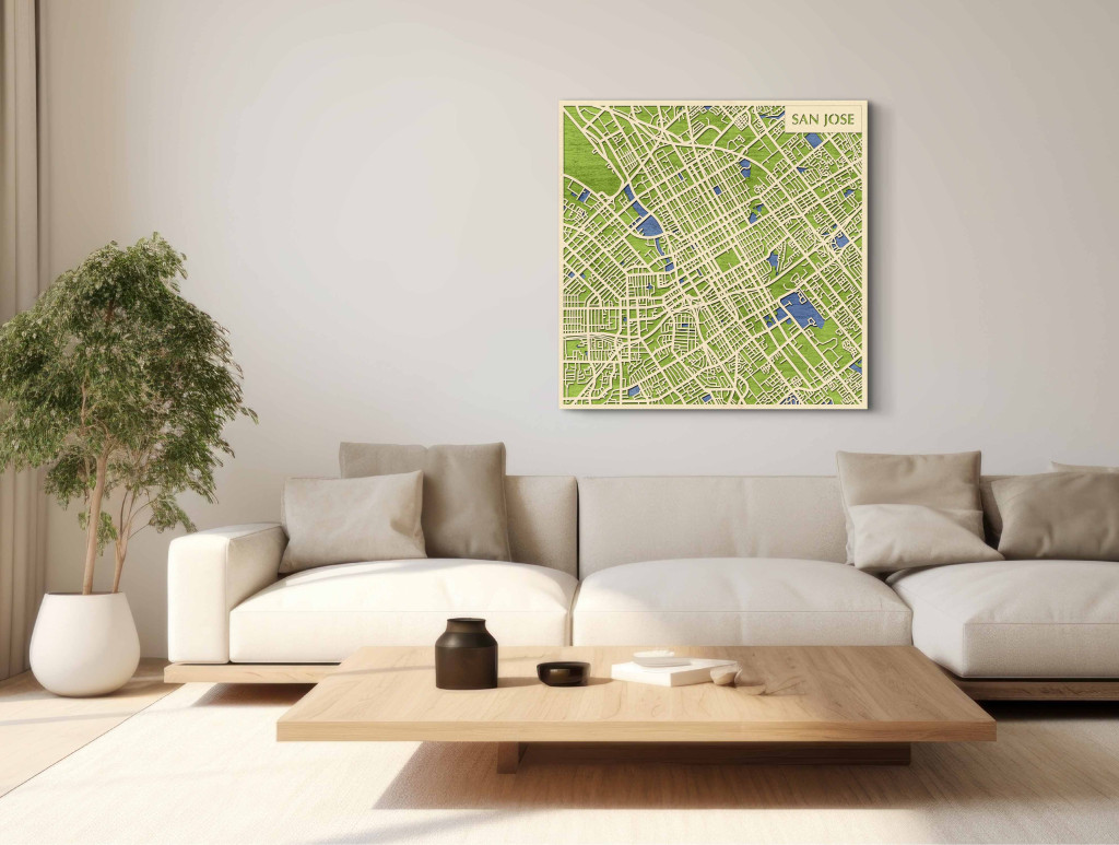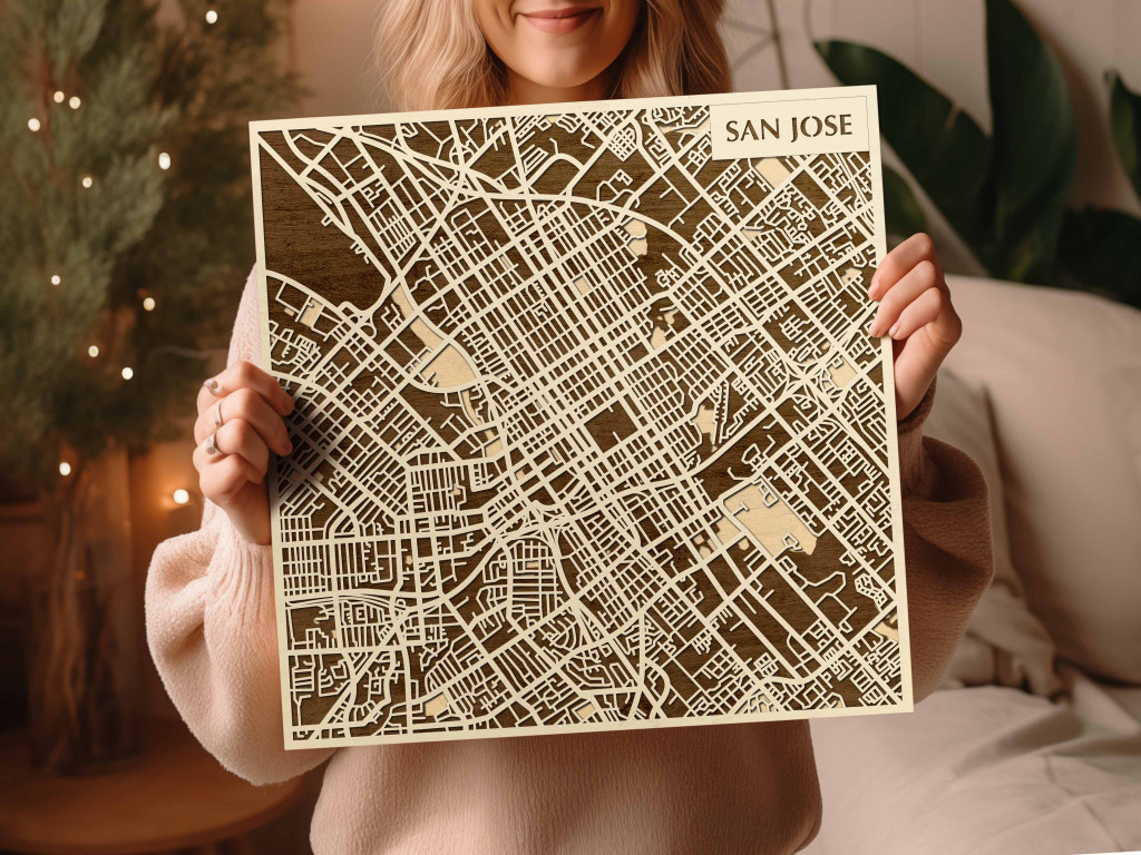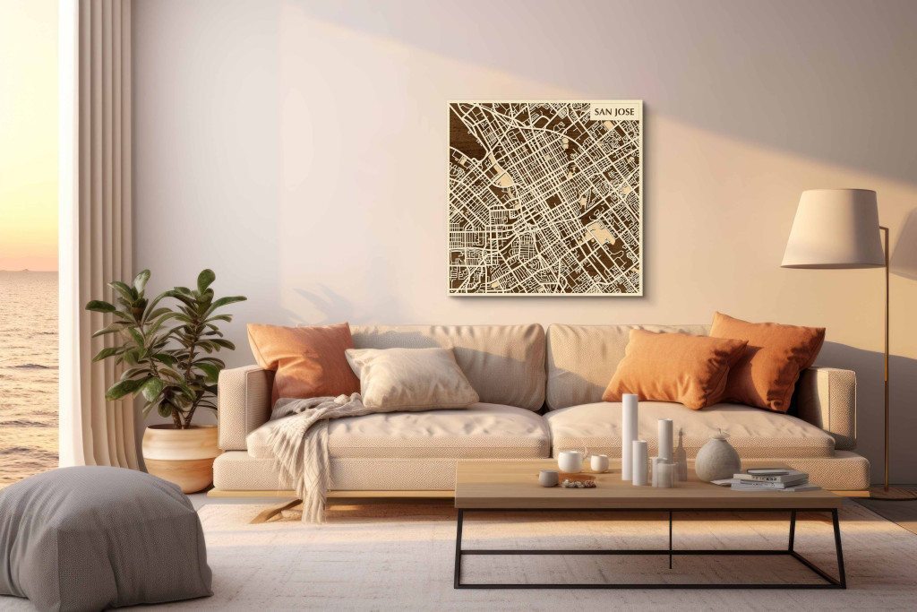 San Jose 3D fa várostérkép fali dekoráció – Natura Products