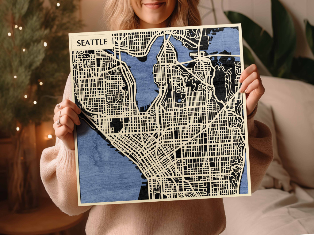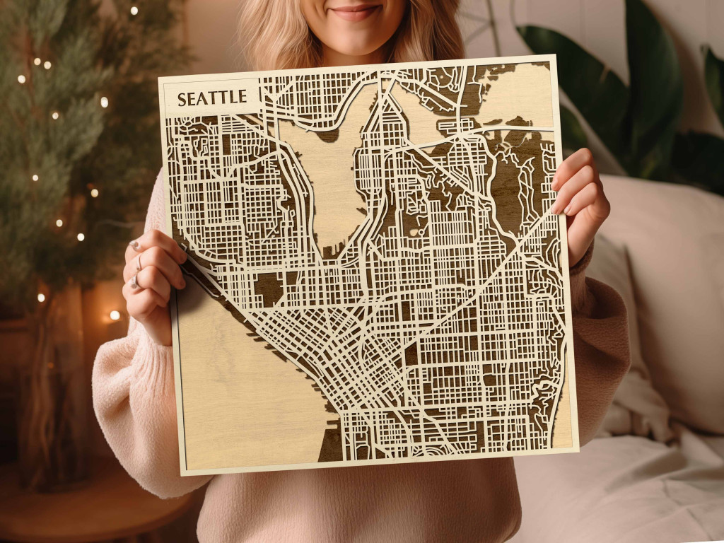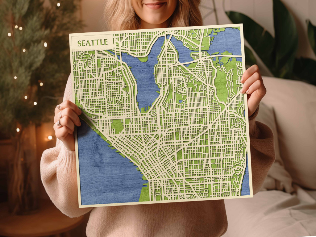 Seattle 3D fa várostérkép fali dekoráció – Natura Products