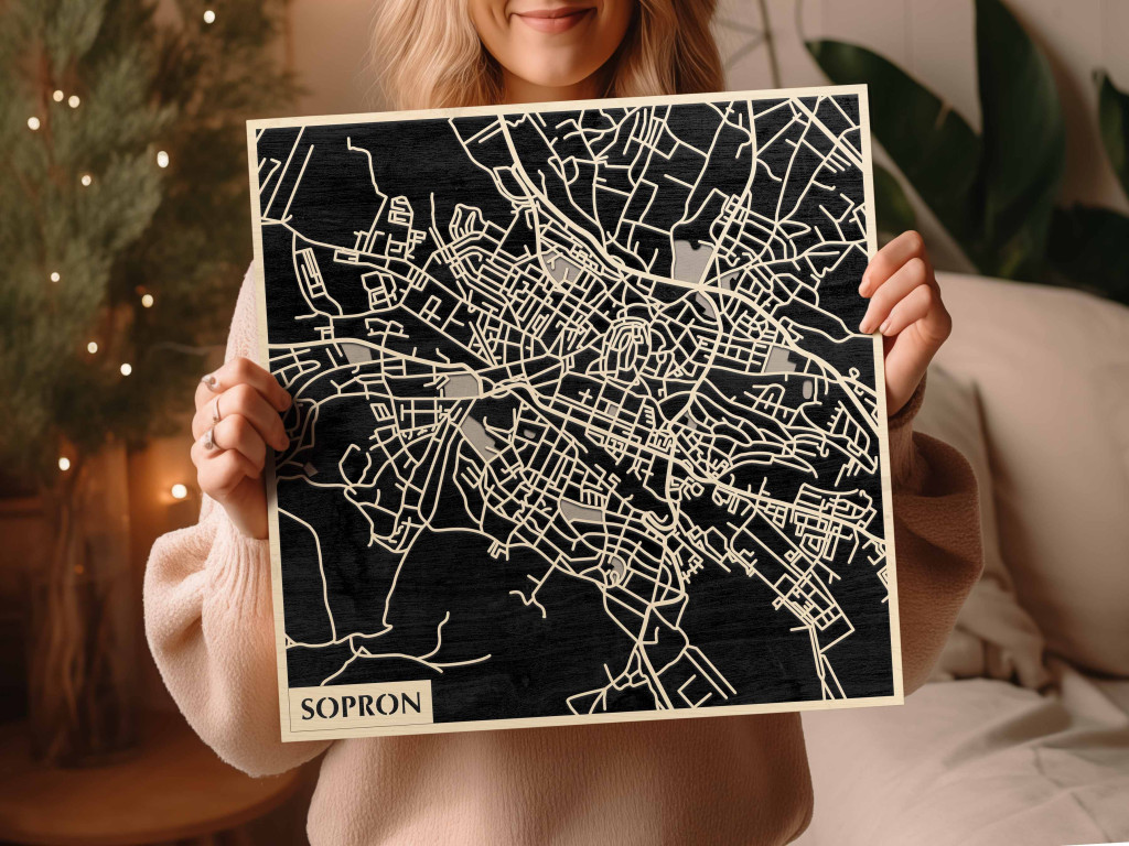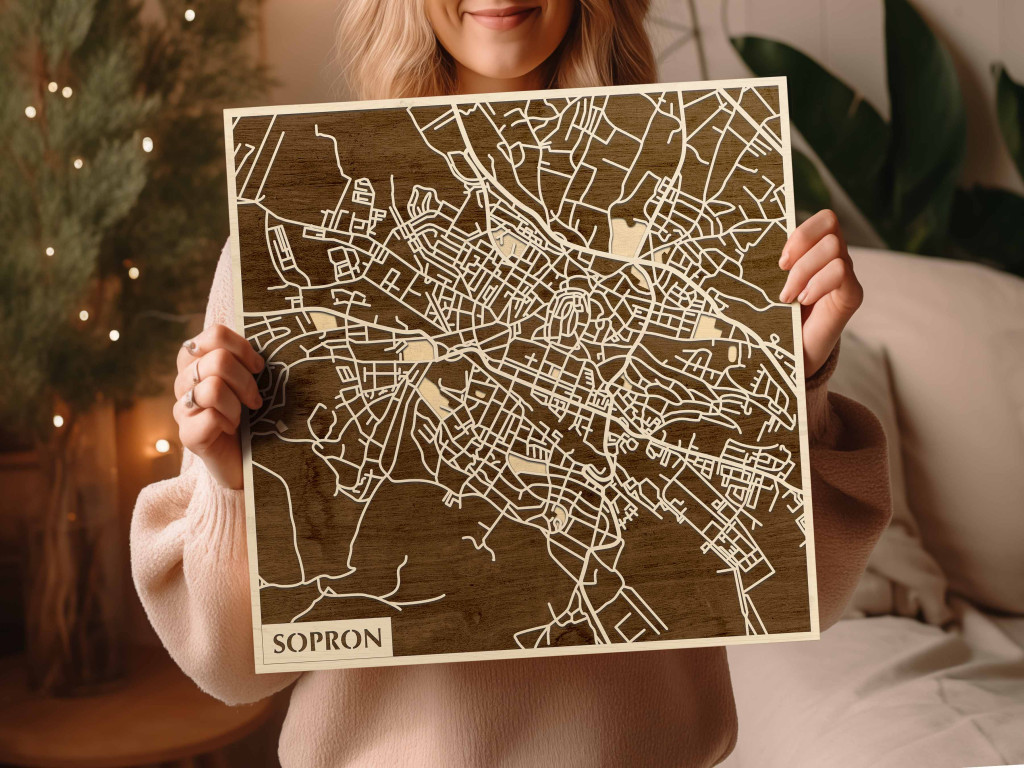 Sopron 3D fa várostérkép fali dekoráció – Natura Products
