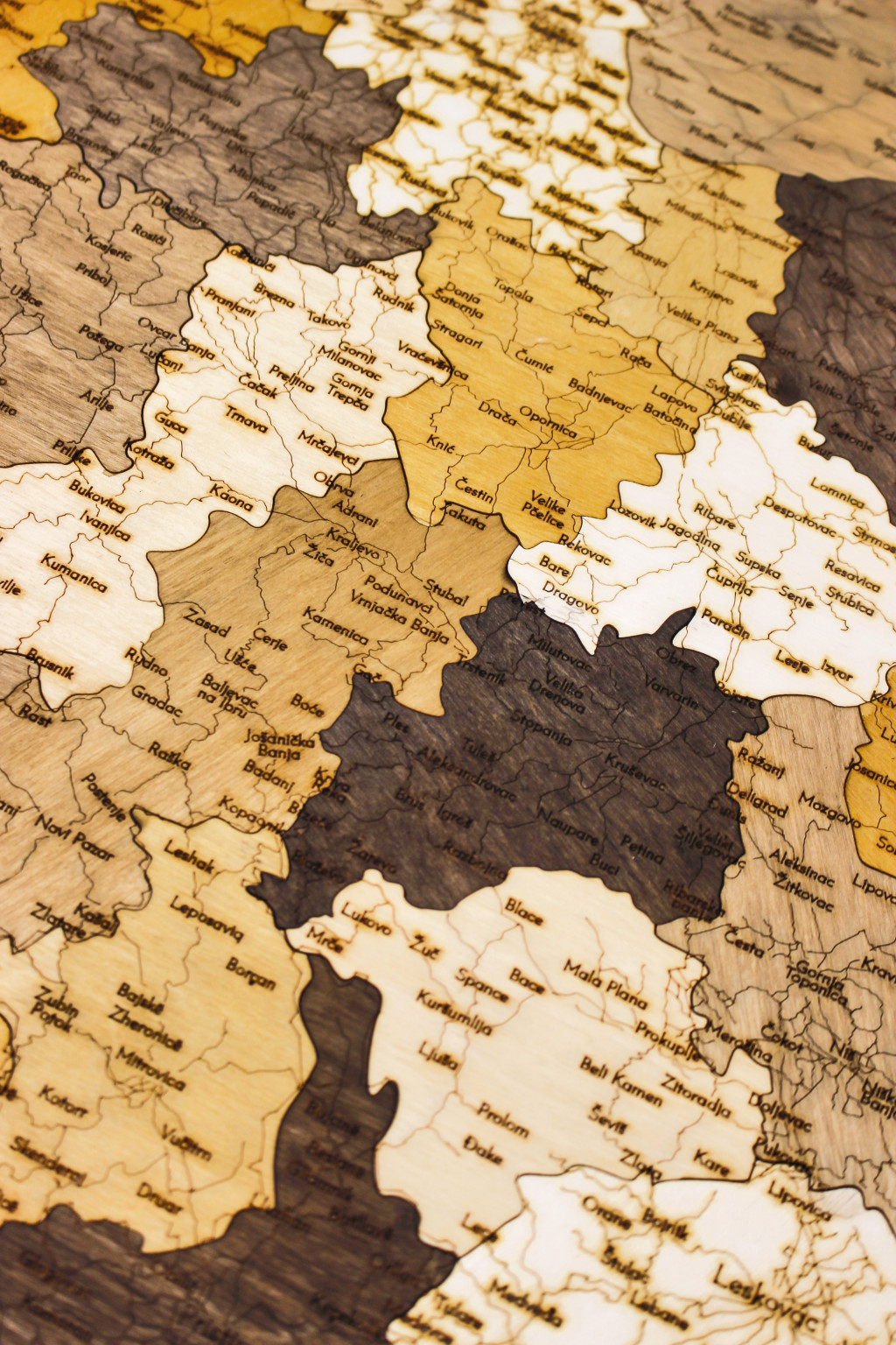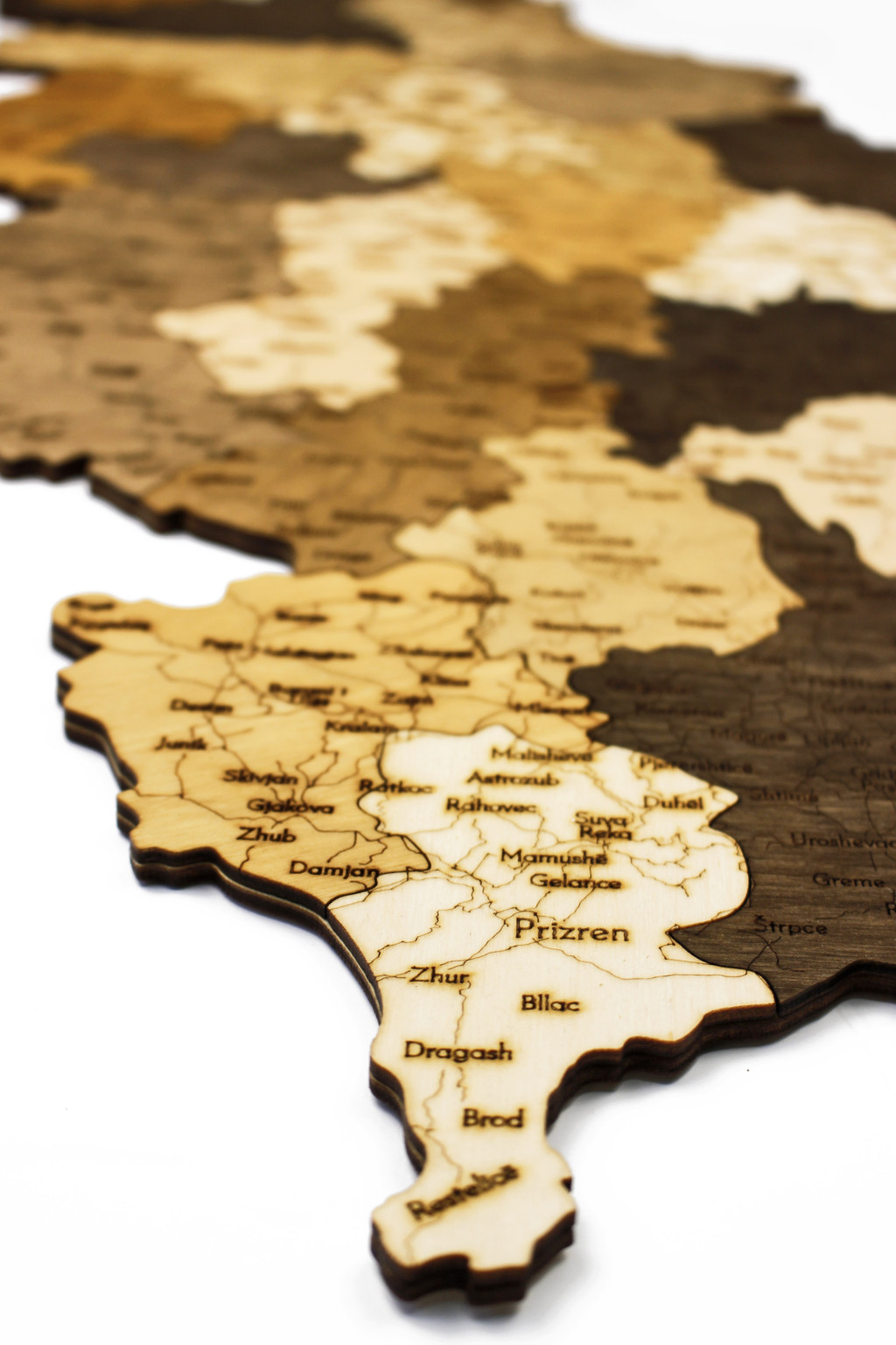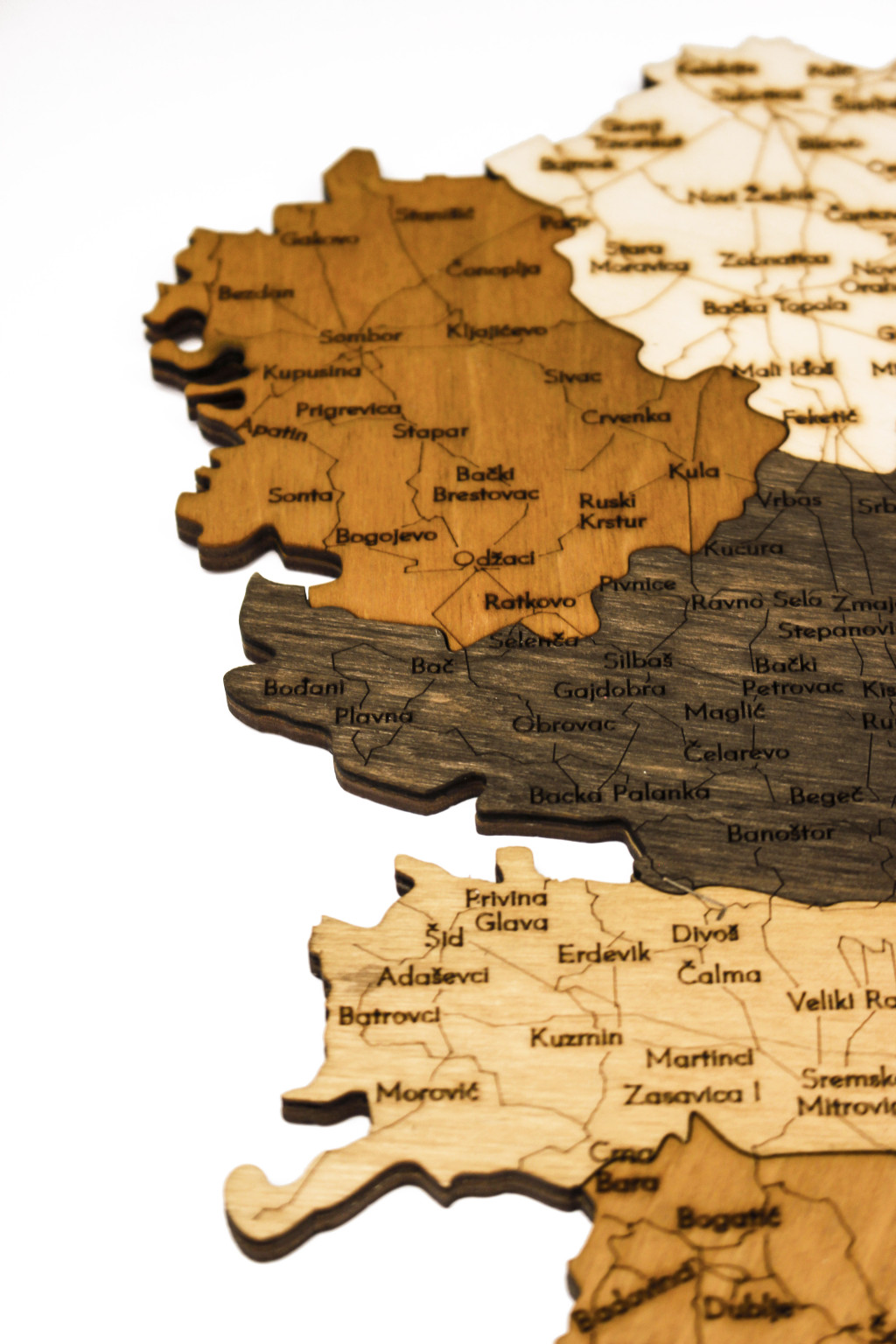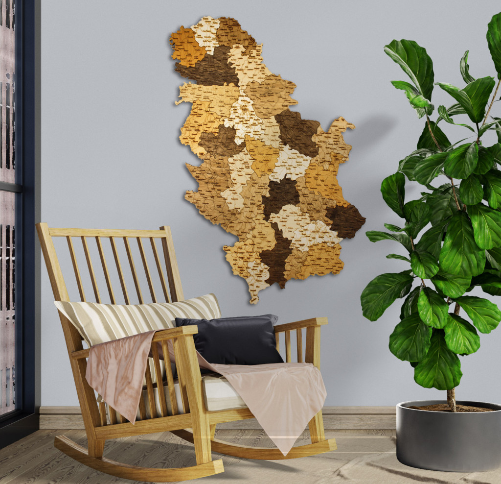 Forma & Kontextus: Kiegyensúlyozott, belső-európai pozícióra épülő térképi arány. Közép-Balkán vizuális csomópontként használható szomszédos országokkal együtt (pl. tematikus régiós fal).
