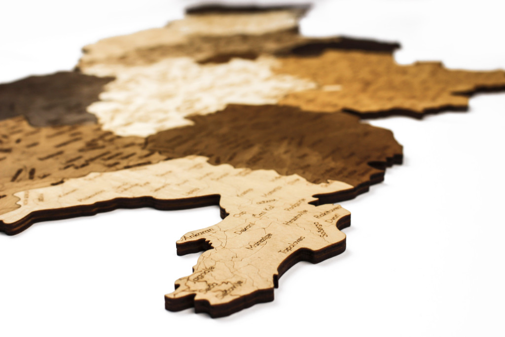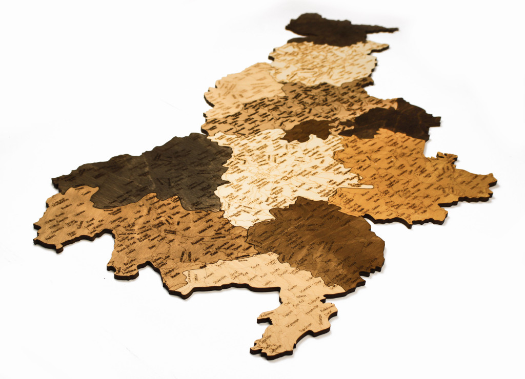 Felhasználás: regionális oktató installáció, földrajzi gyűjtemény fal, minimalista design sor, utazási élményfal kiegészítő modul. Ajándék: közép-európai térség iránt érdeklődő, outdoor rajongó.