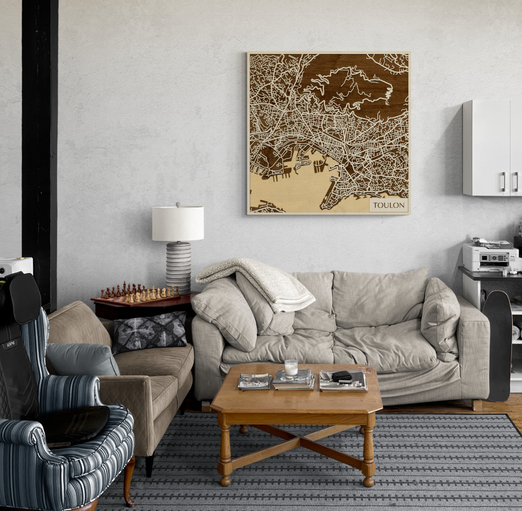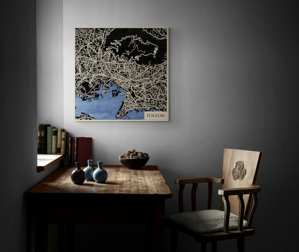 Toulon 3D fa várostérkép fali dekoráció – Natura Products