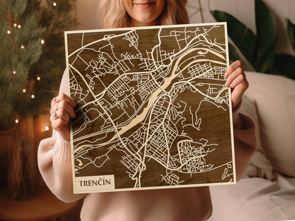 Trencsén – Trenčín 3D fa várostérkép fali dekoráció – Natura Products