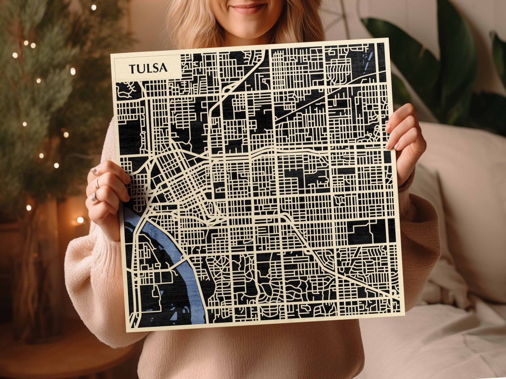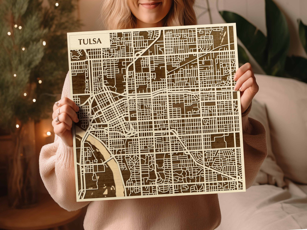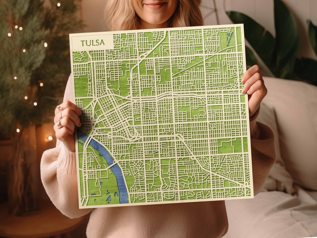 Tulsa 3D fa várostérkép fali dekoráció – Natura Products