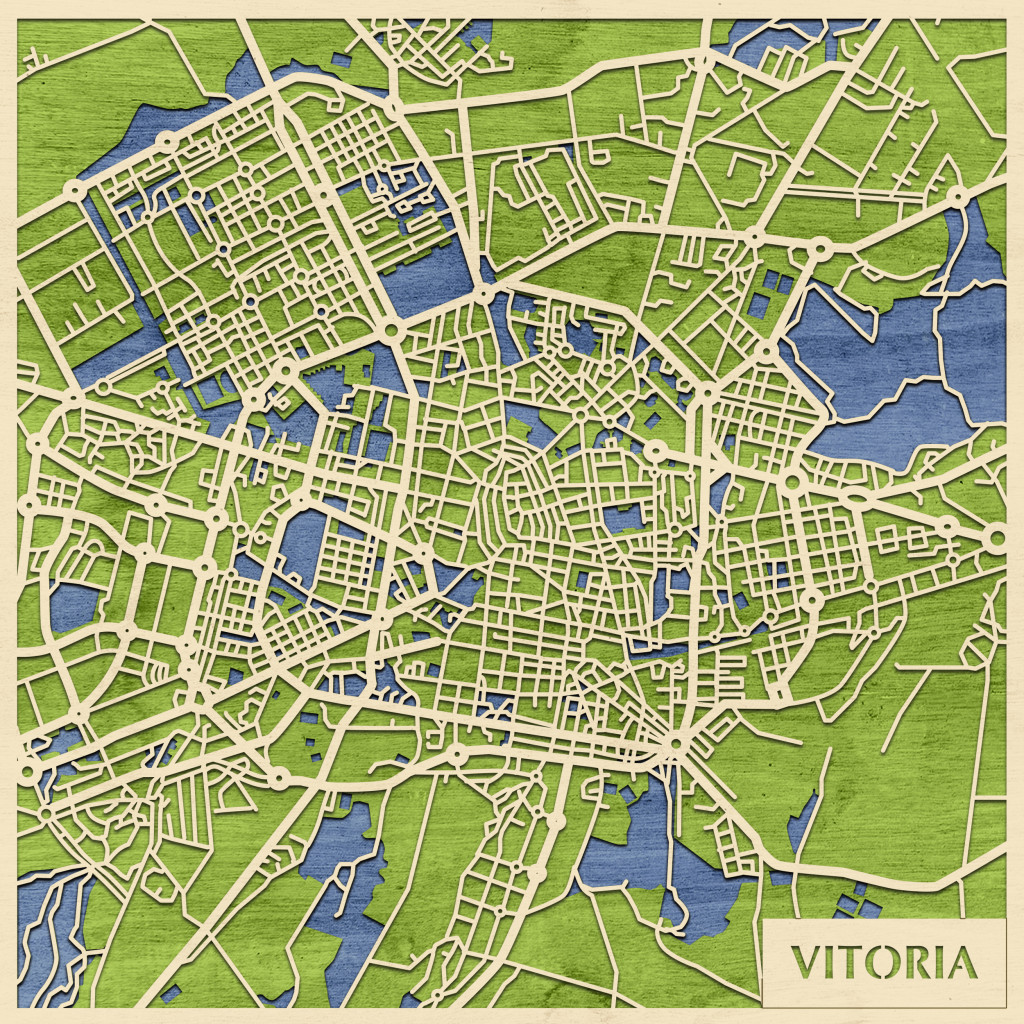 Vitoria-Gasteiz 3D fa várostérkép fali dekoráció – Natura Products