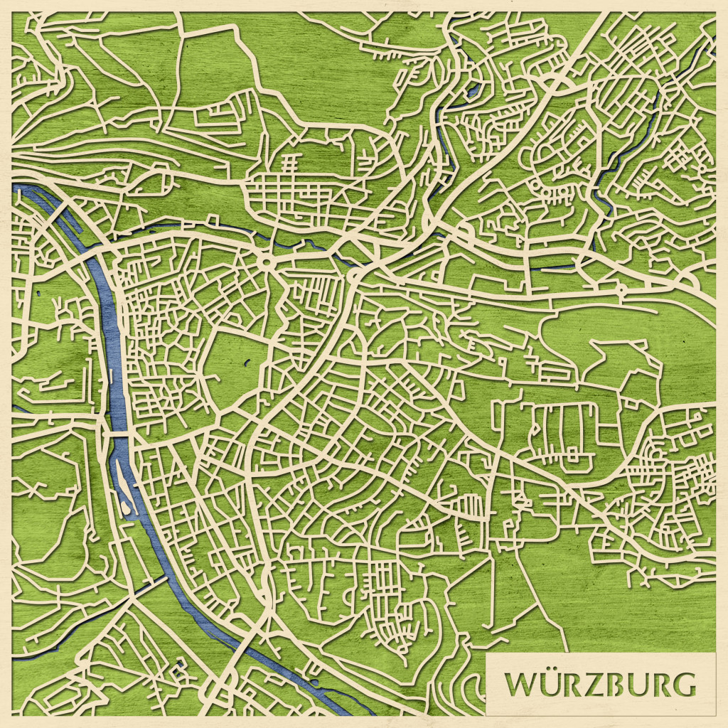 Würzburg 3D fa várostérkép fali dekoráció – Natura Products